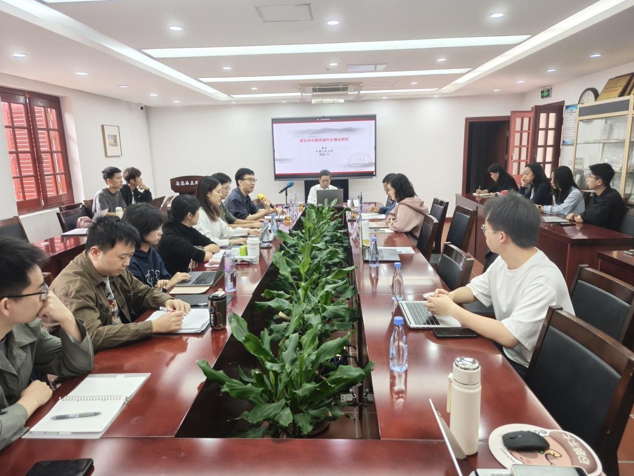11月15日上午,我院邀请到中国人民大学二级教授、博士生导师,中国人民大学习近平新时代中国特色社会主义思想研究院院长秦宣教授于囊萤楼302会议室作题为“深化对中国式现代化理论体系研究”的学术讲座。本次讲座由马克思主义学院副院长刘皓琰教授主持,学院教师与部分本硕博学生积极参与了此次学习。