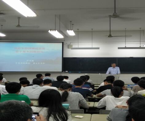 同时,严教授在讲授过程中,引经据典,突出习近平治国理政思想中人民的中心地位。他强调,“四个全面”战略布局与人民群众的幸福安康息息相关,习近平治国理政的思想始终践行以人民为中心的发展理念。最后,严教授指出习近平的治国理政思想是科学的世界观与方法论,它融合了马克思主义的理论结合实践和辩证统一的方法,形成了这一博大精深的治国理政思想体系。