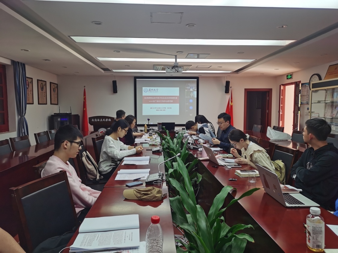 第三位主讲人为厦门大学马克思主义学院连文妹老师。她作了题为《抗美援朝运动中侨乡民众动员的情感因素——以广东江门为中心的考察》的报告,着重考察了抗美援朝运动中中共运用情感因素开展民众动员的过程。她指出,由于侨乡特色,广东江门民众在抗美援朝运动之初恐惧不安、消极冷漠的情感十分突出。新政权通过舆论宣传、情感动员以及海外华侨亲历、亲见、亲闻典型事例的凸显,特别是著名侨领司徒美堂的亲身动员,江门民众的民族情绪和爱国情感在层层激励中不断升华。通过情感因素的及时引导与有效利用,“抗美援朝,保家卫国”成为全社会的共同意志,民众社会心态随之进行调适,抗美援朝运动各项工作得以开展。抗美援朝运动中爱国情感的充分调动成为此后中国进行政治动员和社会改造的动力源泉。在与谈环节,林超超、王婧倩、我院中国近现代史教研部的郑伟三位老师进行了发言。他们指出这个报告从情感因素理解抗美援朝运动中的民众动员,运用了社会心理学的理论方法,丰富了中共党史研究的视野,具有重要启示;展现了抗美援朝初期民众的复杂情绪,新政权运用情感因素的动员,江门民众社会心态的转变,抗美援朝运动的开展深化的完成过程。他们指出这个研究在丰富与拓展资料支撑,如日记、内参资料等方面可以进一步完善,而对于国家在其中发挥的作用、侨眷向不同国家流向的影响,也可以进行更为深入地探讨。
