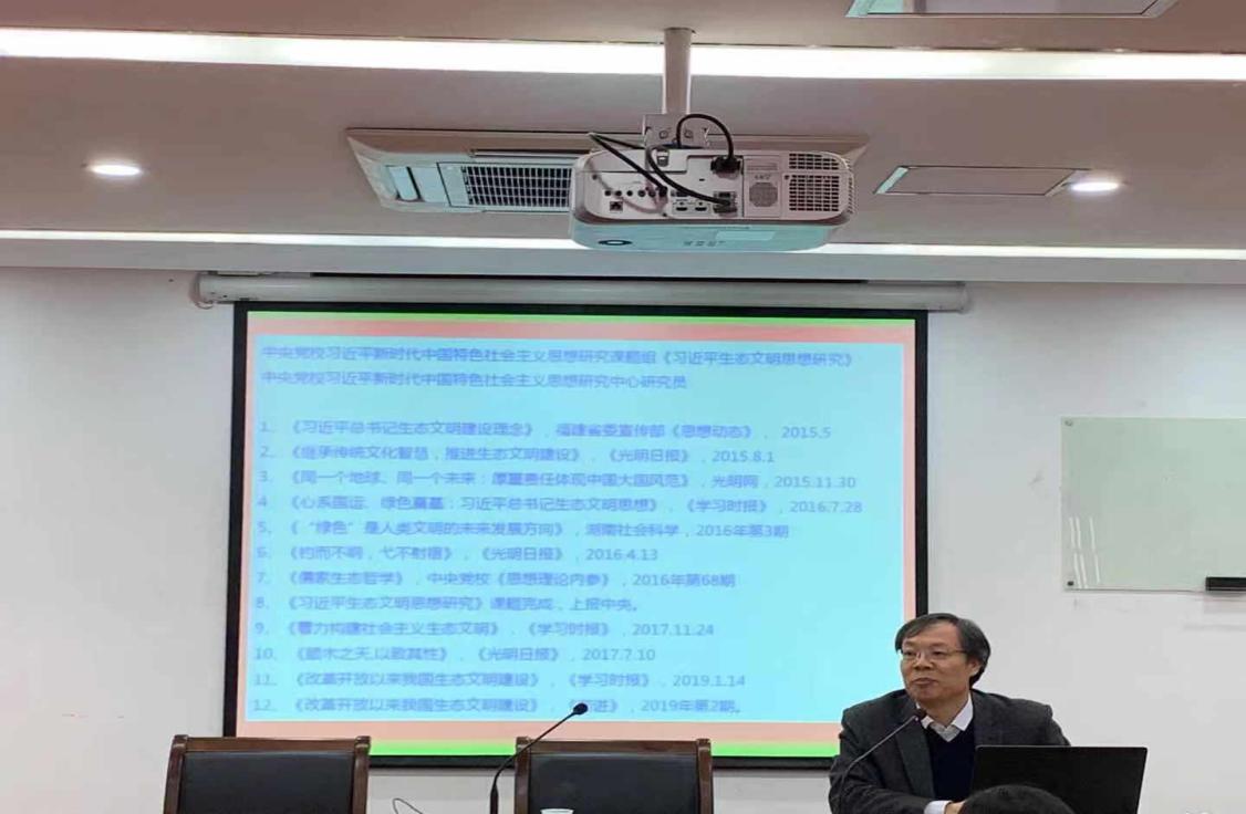 12月22日上午,学院在囊萤楼313会议室举办马克思主义论坛专题讲座,本期邀请了中共中央党校教授、博士生导师乔清举教授为我院师生做“习近平生态文明思想与中国传统生态哲学”的专题报告。讲座由马克思主义中国化教研部冯霞教授主持。