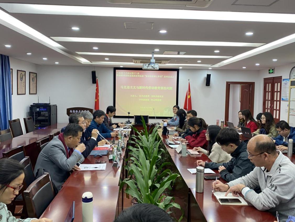 为深入推进新时代劳动教育发展,12月19日下午,学院在囊萤楼302会议室举行“马克思主义与新时代劳动教育前沿问题”座谈会,邀请原西南师范大学校长宋乃庆教授、中国劳动关系学院党委书记刘向兵研究员、上海师范大学何云峰教授、华东师范大学宁本涛教授与我院师生作为座谈嘉宾,与我院师生分享新时代劳动教育前沿问题。我院常务副院长张有奎教授主持会议。