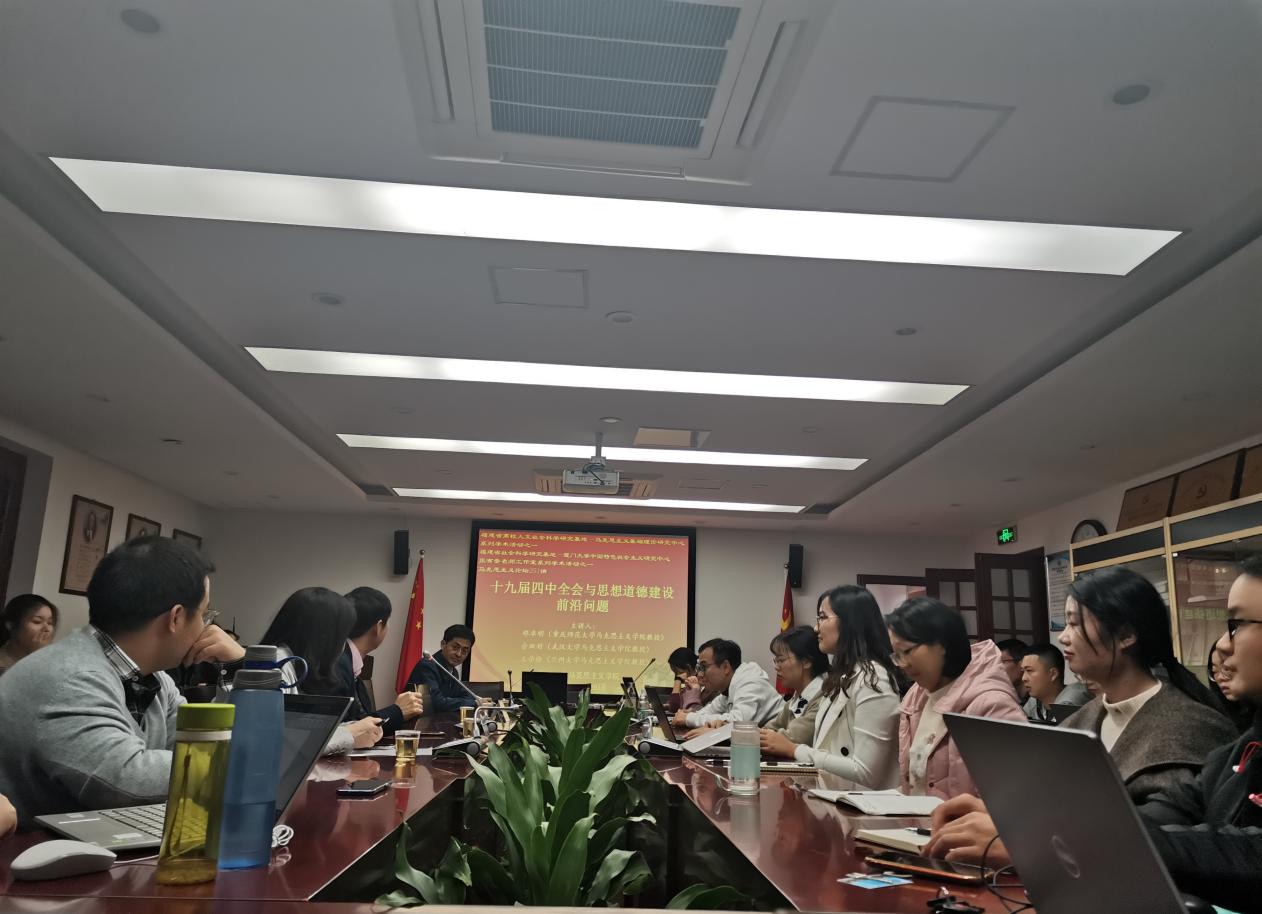12月28日,我院邀请重庆师范大学马克思主义学院邓卓明教授、兰州大学马克思主义学院王学俭教授、武汉大学马克思主义学院佘双好教授在囊萤楼302报告厅作了题为“十九届四中全会与思想道德建设前沿问题”的讲座。本次讲座由我院常务副院长张有奎教授主持,部分老师和部分硕、博研究生参加。