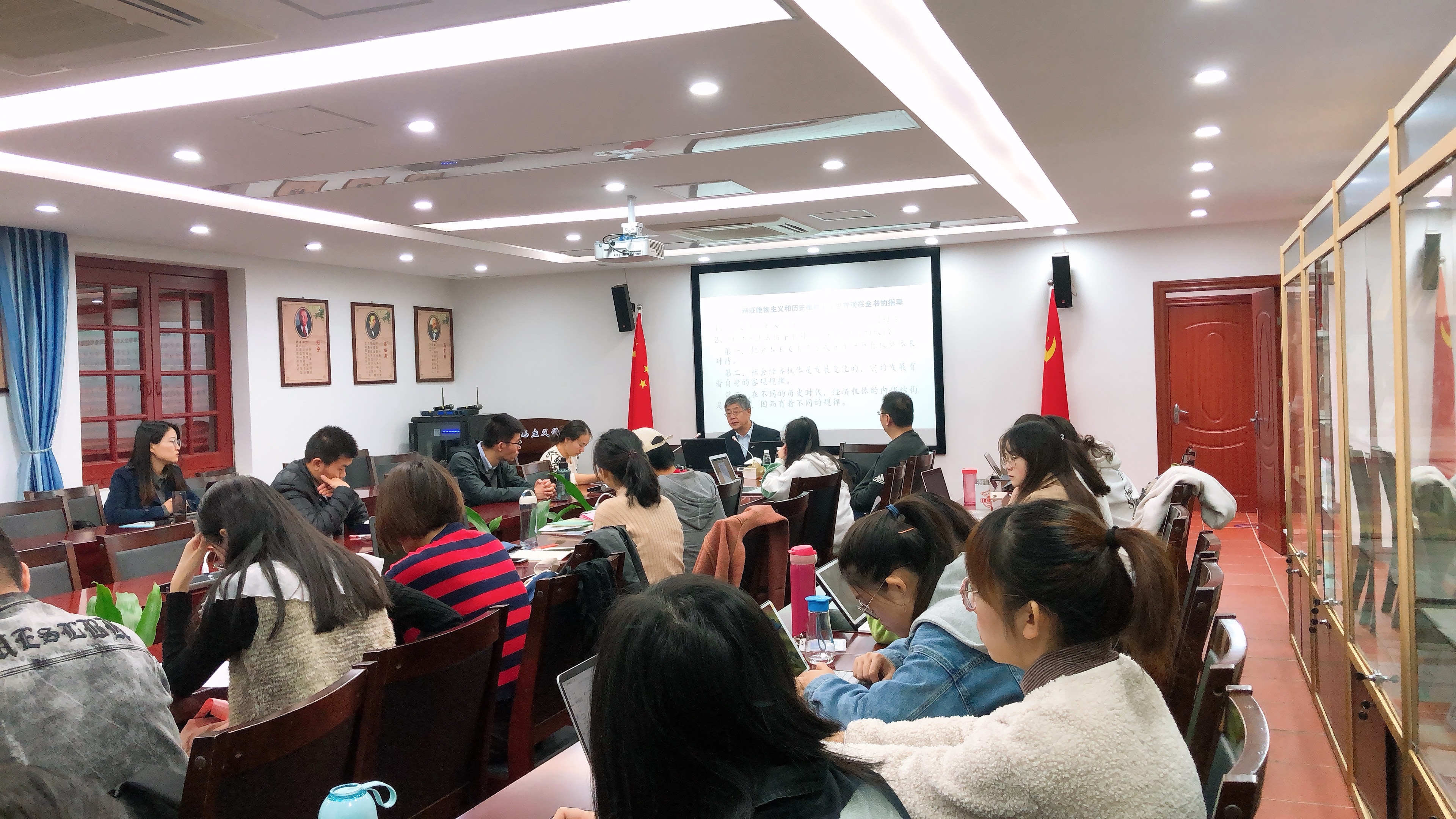 紧接着,张俊山教授以丰富的著作语录和生动的案例剖析了当今对《资本论》是经济学著作还是哲学著作的争议,简单谈了辩证唯物主义和历史唯物主义的产生,随后对历史唯物主义指导下《资本论》研究对象及唯物辩证法指导下对研究对象的性质认识进行阐释。
