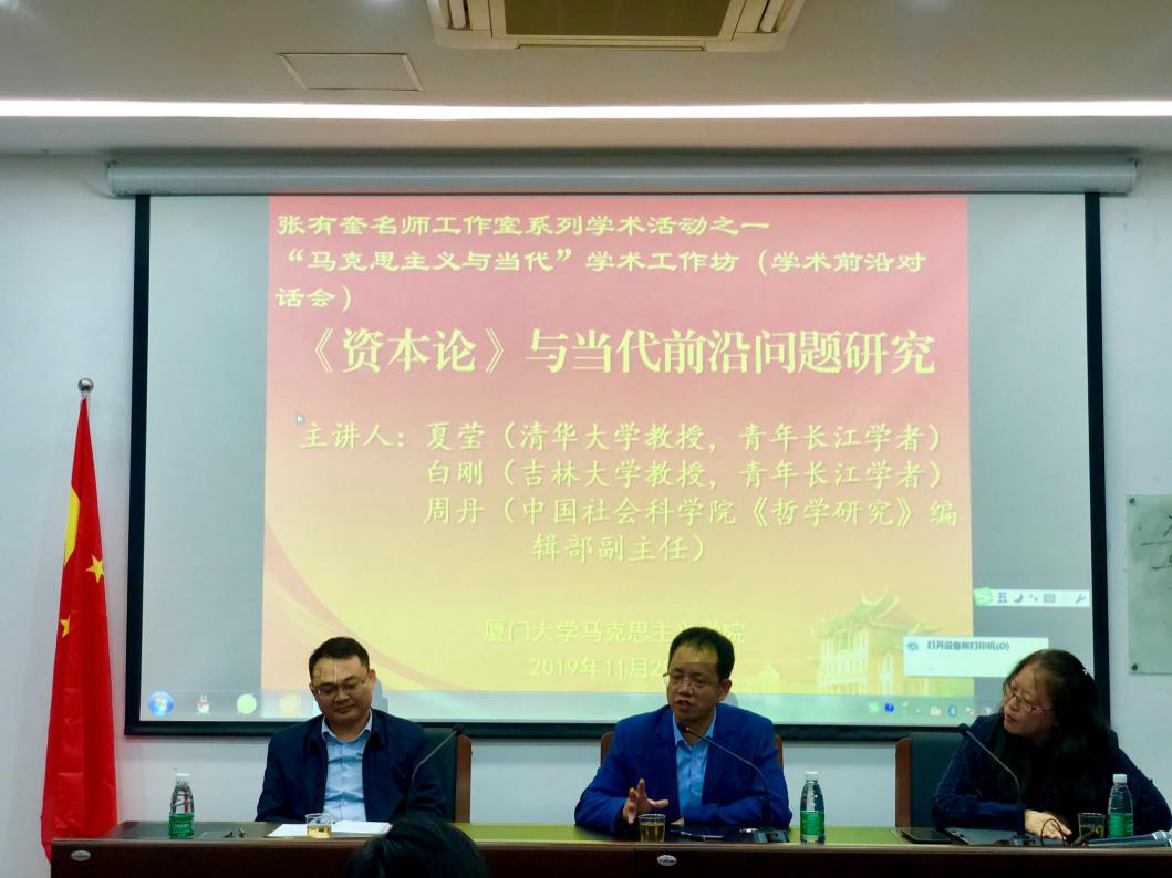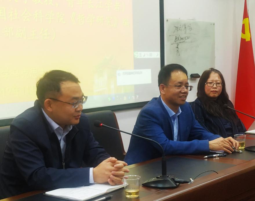 11月29日,我院邀请了清华大学教授、青年长江学者夏莹、吉林大学教授、青年长江学者白刚和中国社会科学院《哲学研究》编辑部副主任周丹在囊萤楼216会议室作了题为“《资本论》与当代前沿问题研究”的专题讲座。讲座由我院常务副院长、副书记张有奎教授主持,我院部分老师和2018、19级全体硕士研究生参加了此次讲座。