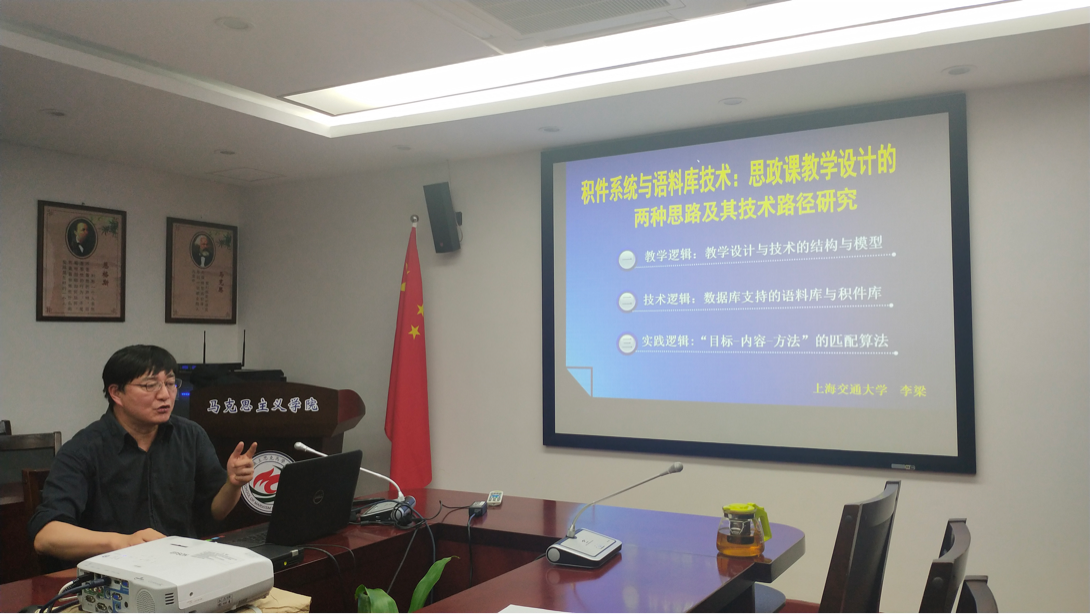 11月27日下午3时,我院诚邀上海交通大学马克思主义学院博士生导师李梁教授在囊萤楼302会议室作题为“积件系统与语料库技术:思政课教学设计的两种思路和构想”的专题讲座。讲座由我院党委副书记原宗丽老师主持,我院部分教师及博士生研究生参与了本次讲座。