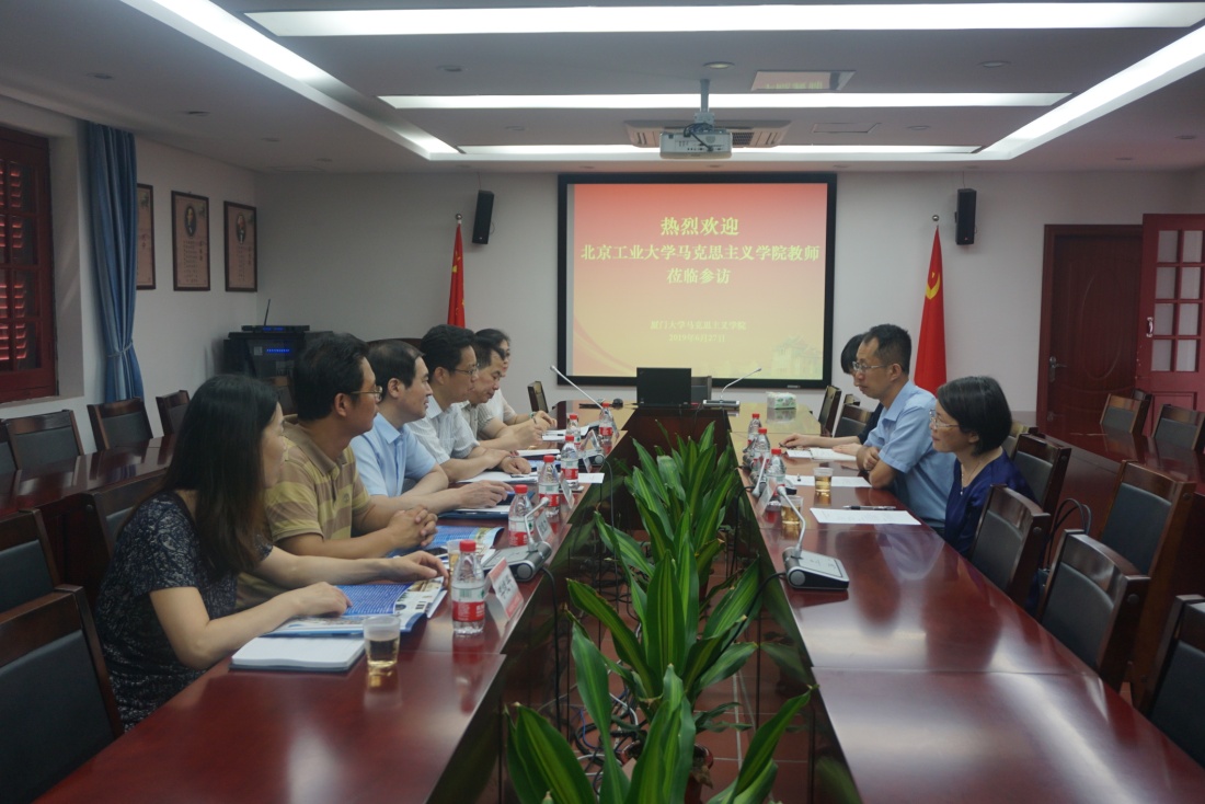 2019年6月27日上午,北京工业大学马克思主义学院副书记兼副院长高峰教授、艾国教授、崔希福教授等一行6人来我院交流访问。我院副院长张艳涛教授、近现代史纲要教研部副主任周雪香教授、思想政治教育教研部副主任曾炜琴副教授参加了此次座谈会。