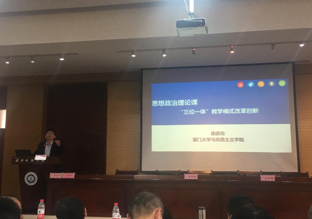 徐进功院长在大会上就我院思政课“三位一体”的教学模式进行了介绍与交流。