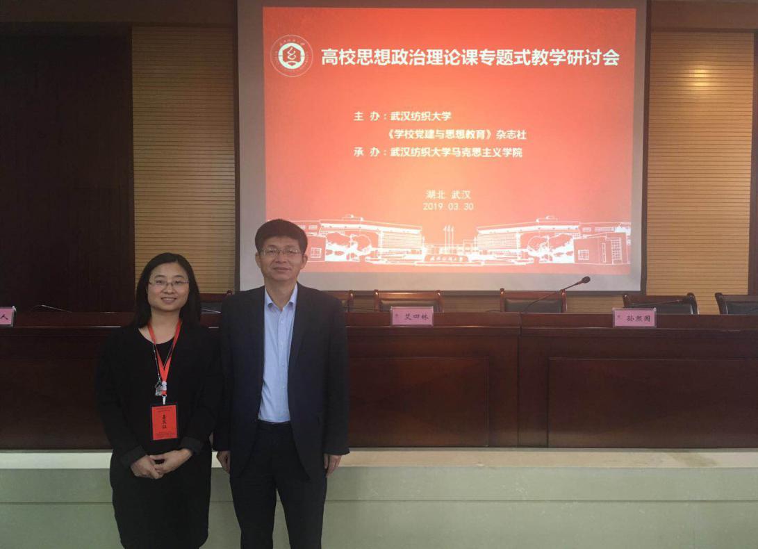 3月30日,为深入学习贯彻落实党的十九大、全国教育大会和全国高校思想政治工作会议精神,进一步推进习近平新时代中国特色社会主义思想“三进”工作,切实担当立德树人根本任务,促进教材体系向教学体系转化,推进思政课教法改革,打造大学生真心喜爱、毕生难忘、终身受益的“思政金课”,全国高校思想政治理论课教学研讨会在武汉纺织大学召开。本次会议由武汉纺织大学与《学校党建与思想教育》杂志社共同举办,我院院长徐进功教授、庄三红助理教授应邀与会。