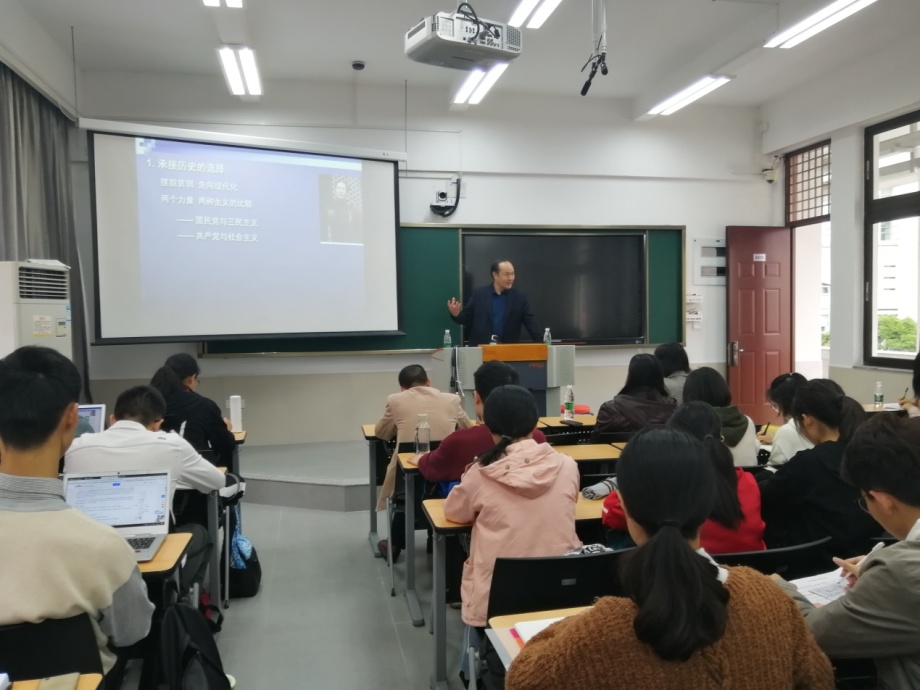 秦刚教授从“承接历史的选择”“艰辛的探索”“成功开创”“进一步拓展”以及“进入新时代”五个纵向承接的方面,向同学们详细地讲述了中国特色社会主义道路的历史渊源和发展进程。秦教授指出,在探索阶段,用社会主义发展中国,是明确的方向与良好的开端;十一届三中全会是探索的新起点;在中国道路成功开创后,中国的实践和理论创新的脚步都在加快;进入新时代后,中国道路的新进程和新坐标蕴含着事业发展的新要求我们从追赶时代步伐到同步时代。