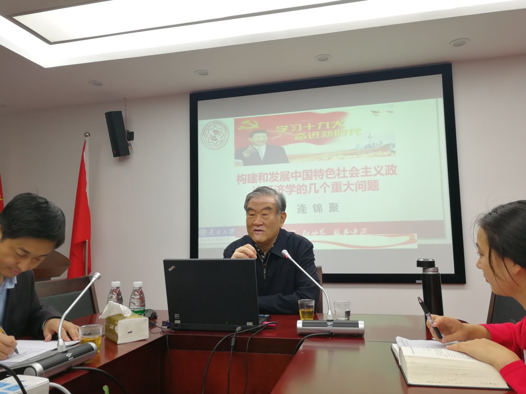 为增进研究生学术知识,培养学术意识,开拓学术视野,更好地将所学、所思、所用相结合,学院于12月7日特邀逄锦聚教授开展题为“构建和发展中国特色社会主义政治经济学的几个重大问题”专题讲座,本次讲座由我院常务副院长张有奎教授主持,2018级全体硕士生、其他年级部分硕、博研究生代表参加了此次会议。