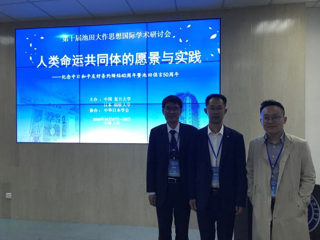 在纪念《中日和平友好条约》缔结40周年之际,10月27—28日,由中国复旦大学、日本创价大学主办,中华日本学会协办,复旦大学日本研究中心承办,以“人类命运共同体的愿景与实践——纪念中日和平友好条约缔结40周年暨池田倡言50周年”为主题的第十届池田大作思想国际学术研讨会在复旦大学举行,来自中、日、韩及台湾地区的70余名学者参会。我院张艳涛教授、章舜钦副教授、贾凯助理教授受邀参会并作学术发言。