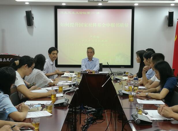 6月22日下午,张有奎名师工作室邀请马克思主义理论研究和建设工程首席专家、中共中央党校严书翰教授举办主题为“如何提升国家社科基金申报书质量”的学术讲座。讲座在我院302会议室举行。我院部分教师和研究生、“1+N”项目部分成员、张有奎名师工作室的访问学者(数位省内高校马院教师)听报告。报告由张有奎教授主持。
