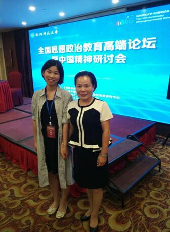 5月12日,由《思想教育研究》杂志社、浙江省中国特色社会主义理论体系研究中心和杭州师范大学马克思主义学院主办,杭州师范大学马克思主义学院承办的“全国思想政治教育高端论坛暨中国精神研讨会”在杭州召开。我院徐雅芬教授和2015级硕士研究生王月应邀参会。