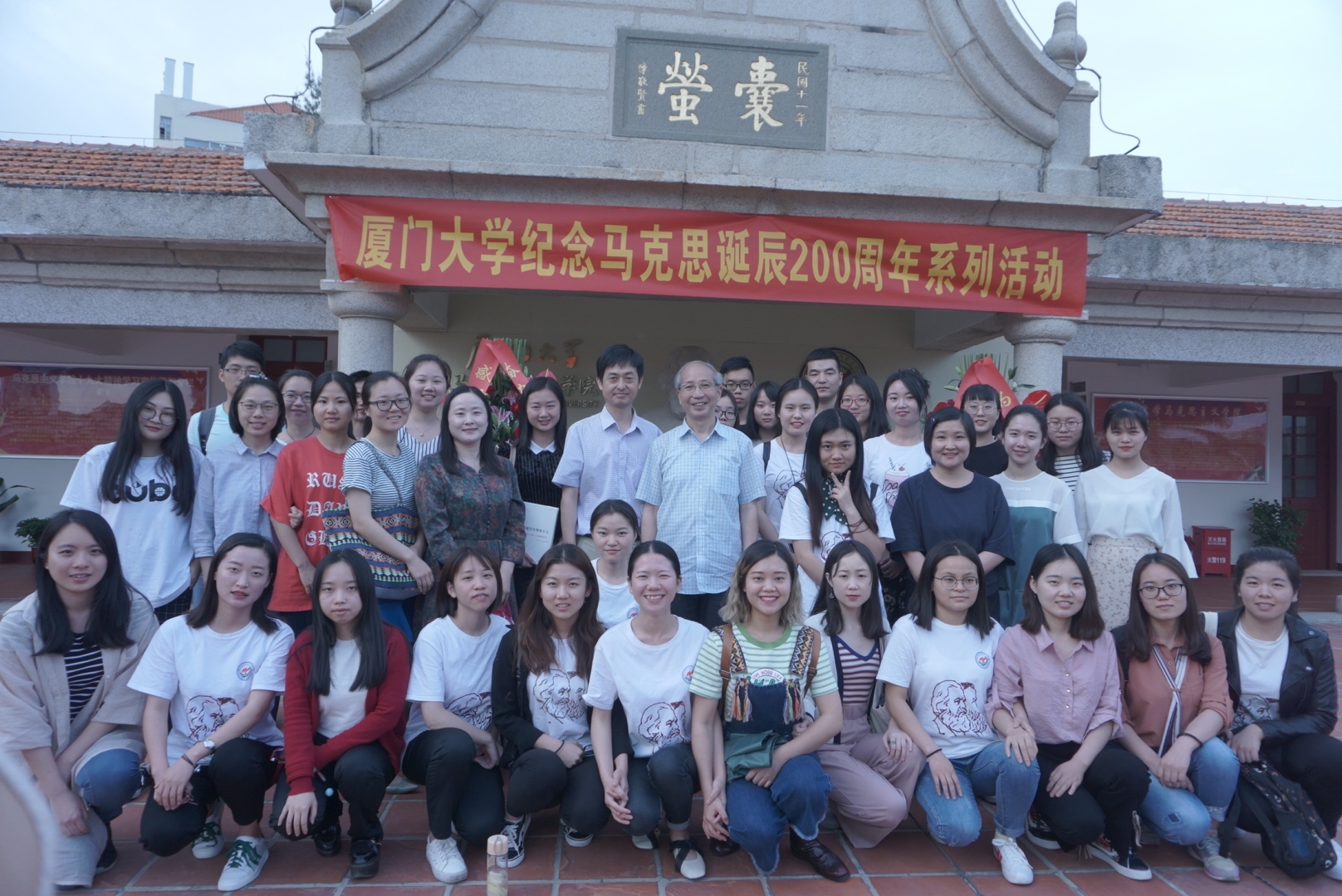 讲座结束后,孙教授与我院师生在囊萤楼马克思雕像前一起合影留念。
