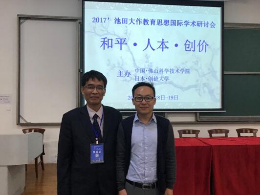 11月18日至19日,以“和平•人本•创价”为主题的2017年池田大作教育思想国际学术研讨会在广东佛山举行,我院章舜钦、贾凯两位老师受邀参会。此次国际学术研讨会由中国佛山科学技术学院、日本创价大学联合主办,佛山科学技术学院池田大作思想研究所承办。日本创价大学理事长田代康则,中国中日友好协会副秘书长王占起,佛山市人民政府副秘书长邓灿荣,佛山市外事侨务局副局长丘晓静,以及来自中、日、韩等国的21所大学和研究机构的60余名专家学者参加此次国际学术研讨会。
