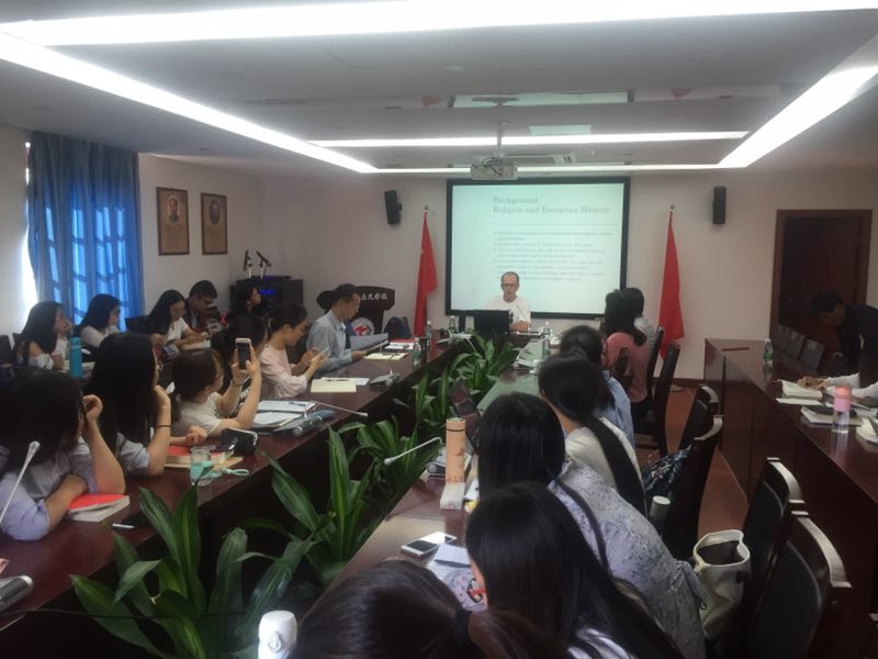 11月10号上午,我院邀请澳大利亚纽卡斯尔大学研究教授、中国人民大学特聘专家罗兰.博尔(Roland Boer)教授在囊萤楼302会议室作了题为“马克思《论犹太人问题》与当代的相关性”的学术讲座。此次讲座由宋建丽老师主持,参加会议有洪楼老师、李仙飞老师以及我院17级硕博研究生。宋建丽老师首先对博尔教授的到访表示热烈欢迎,接着介绍了博尔教授的个人经历、主要研究方向等。随后,博尔教授分享了他在北京感受党的十九大和研读毛主席、习近平总书记著作等相关生活和科研经历,为接下来的讲座打下了轻松愉快的基调。
