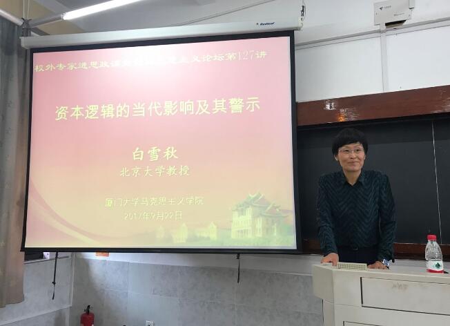2017年9月22日下午16点40,在南强二405教师,我院邀请了北京大学教授白雪秋教授作了一场“资本逻辑的当代影响及其警示”的讲座。主持这次讲座的是杨晨老师。人文学院部分大三学生参加了此次讲座。