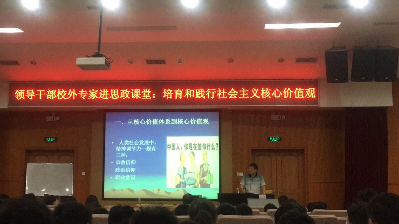 5月12日晚上,教育部高等学校社会科学发展研究中心主任,教育部高校思想政治理论课教学指导委员会副主任,北京师范大学教授、博士生导师王炳林走进厦门大学思政课课堂,为厦门大学2016级本科生作题为“培育和践行社会主义核心价值观”的学术讲座。讲座由马克思主义学院院长白锡能主持。