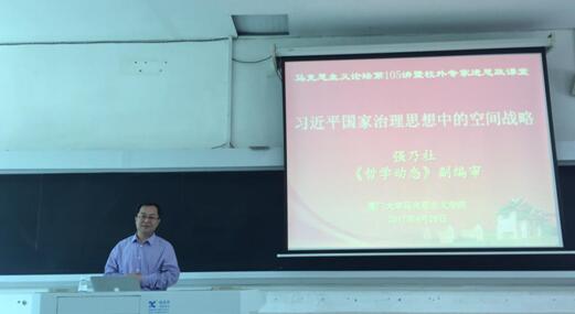 接着,强教授阐述了习近平治国思想中的空间战略问题。我们国家所推行的“一带一路”、南极科考、航天航空、深海深潜、南海开发等一系列的战略布局所体现的是习近平治国思想中的空间战略。在确定的领土主权的基础上进行的国家非领土疆域的空间扩展,这是国家的战略性布局,对于国家发展的战略意义不可比拟。