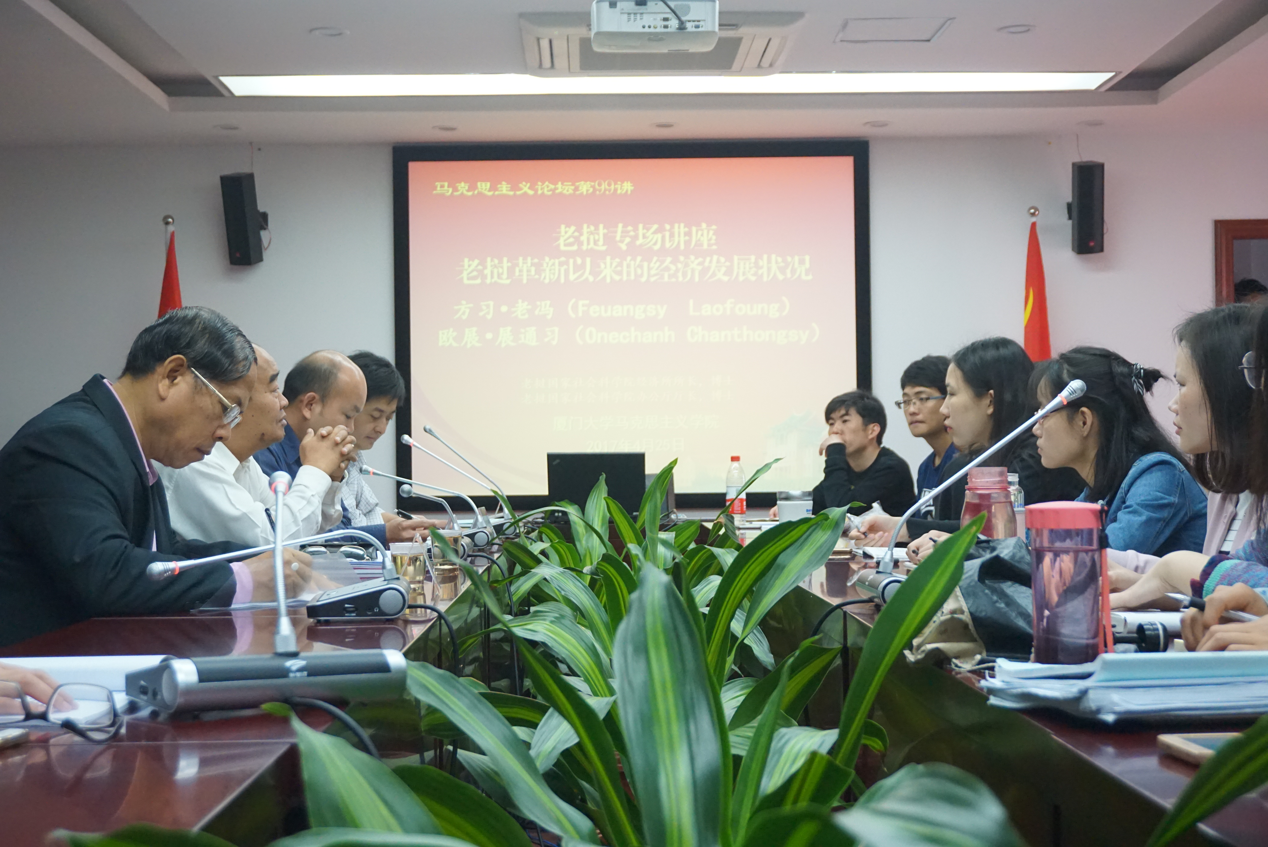 2017年4月25日上午,“马克思主义论坛”学术讲座第99讲在学院囊萤楼302举行。此次论坛由两位老挝专家为我们讲解老挝革新以来的经济发展状况。本次讲座由张有奎副院长主持,2016级全体硕士生参加讲座。