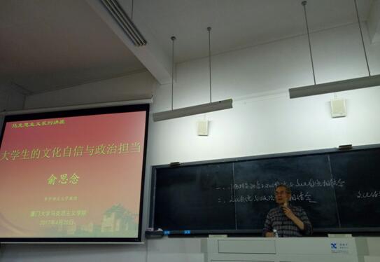 2017年4月20日晚,“马克思主义论坛”学术讲座在海韵301教室举行。此次论坛由华中师范大学俞思念教授主讲,讲座主题为“大学生的文化自信与政治担当”。讲座由贺东航教授主持,我院相关教师、研究生及广大本科生参加了此次讲座。