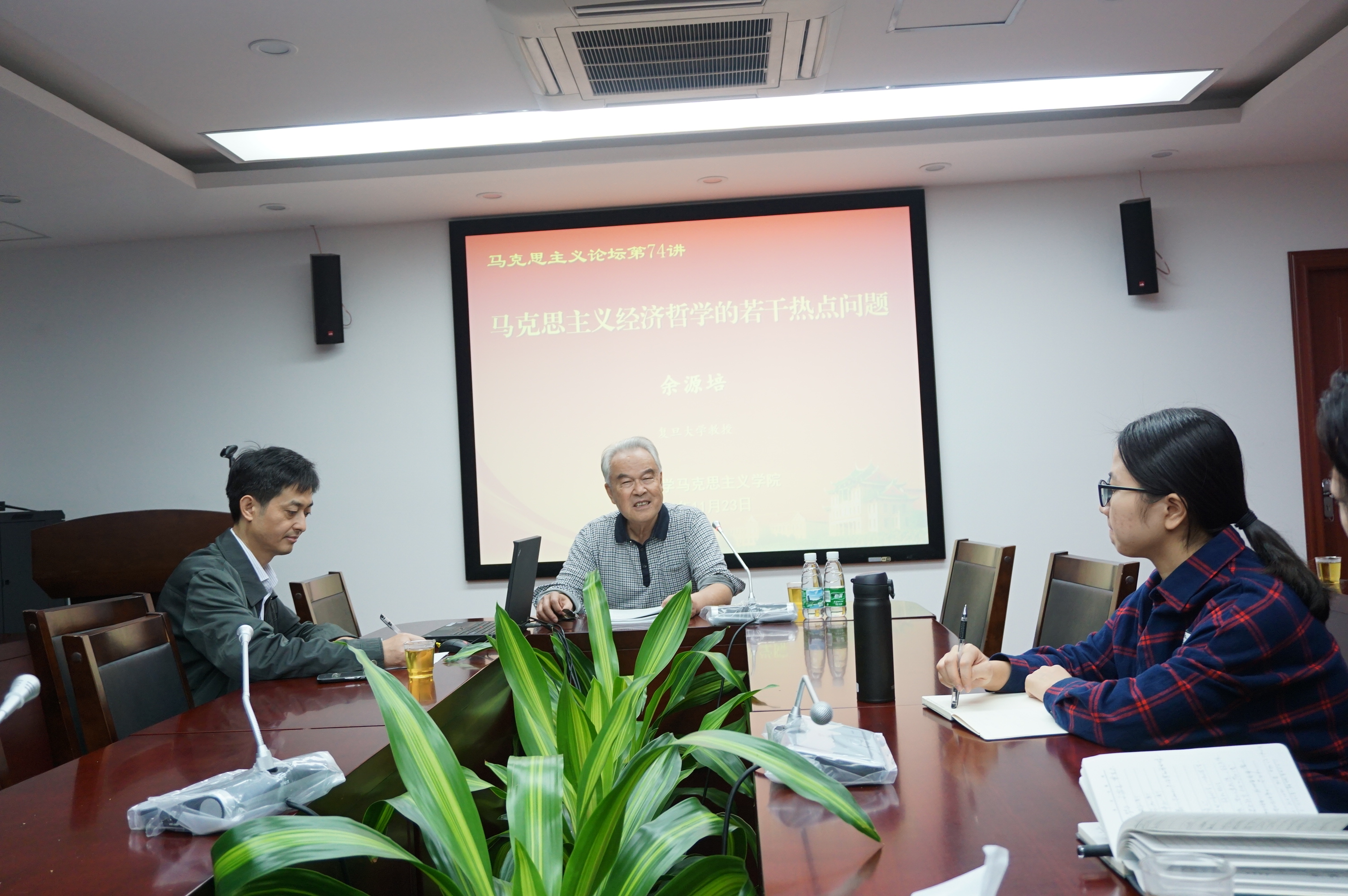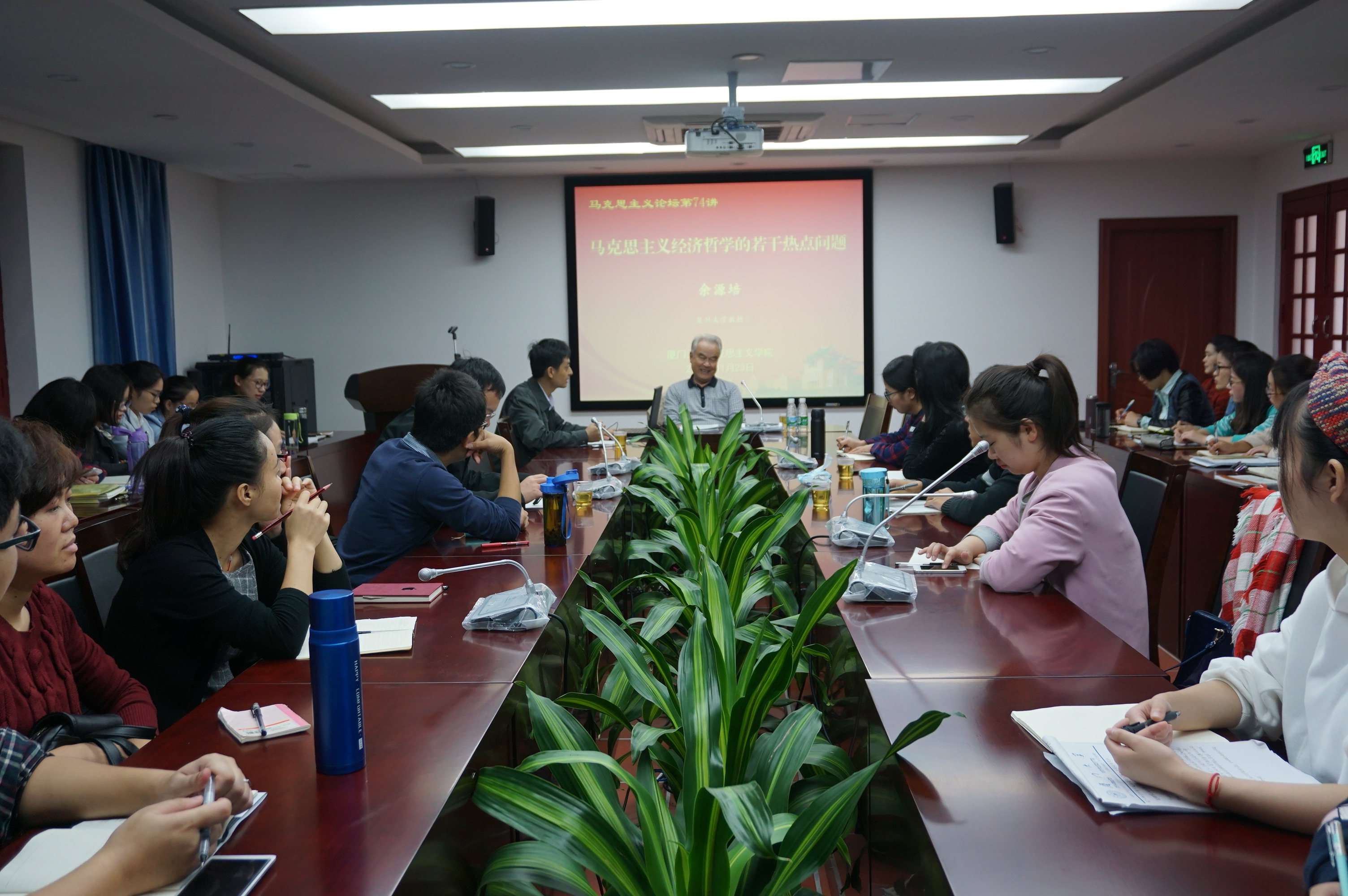 2016年11月23日下午,“马克思主义论坛”学术讲座第74讲在马克思主义学院302会议室举行。此次报告由复旦大学余源培教授主讲,讲座主题为“马克思主义经济哲学的若干前沿问题”。我院部分教师和研究生参加了此次学术讲座。张有奎教授主持。