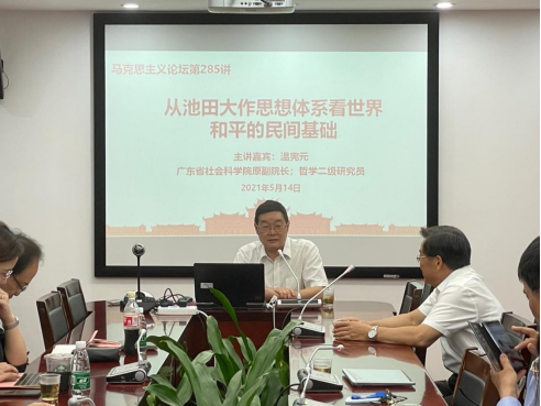 2021年5月14日上午10时,广东省社会科学院原副院长温宪元研究员应邀在囊萤楼302为我院师生作题为“从池田大作思想体系看世界和平的民间基础”的专题讲座。此次讲座由我院贾凯副教授主持,我校外文学院副院长吴光辉教授、历史系黄顺力教授,我院章舜钦副教授以及部分研究生参加了本次讲座。