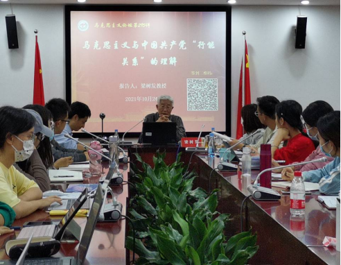 2021年10月24日晚,马克思主义论坛第295讲在囊萤楼302报告厅开讲,中国人民大学教授、中央马克思主义理论研究建设工程首席专家梁树发为我院师生做“马克思主义与中国共产党‘行能关系’的理解”的专题报告。我院常务副院长张有奎教授主持本期论坛,学院部分硕、博研究生参加了专题讲座。