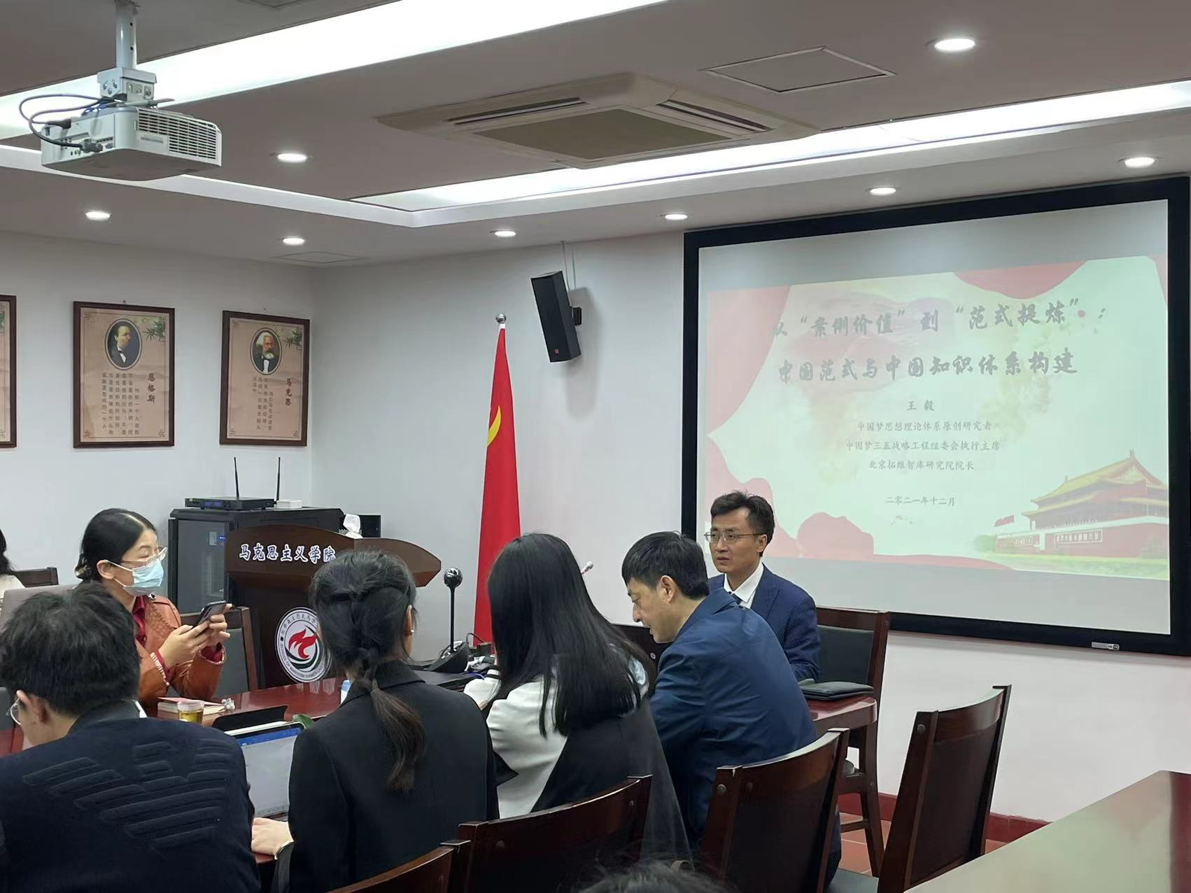 12月24日下午,我院特邀北京拓维科学研究院王毅院长于囊萤楼302会议室作题为“从’案例’价值到’范式’提炼:中国范式与中国知识体系构建”专题讲座,我院常务副院长张有奎教授主持讲座,学院部分硕士研究生参加此次讲座。
