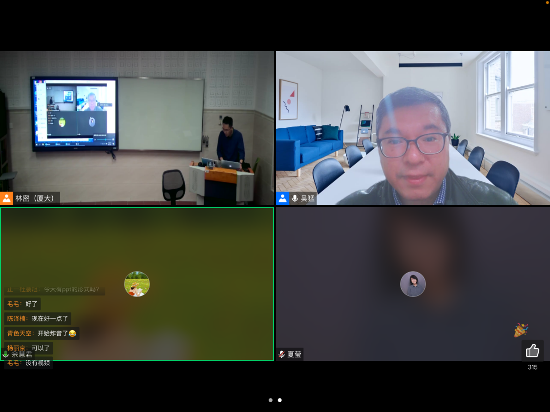 在互动环节,来自清华大学的夏莹教授在线上与吴教授进行了亲切友好的学术交流,吴教授就其中的一些问题予详细地予以解答。线上的老师和同学们也纷纷提出了自己的问题和想法。最后,林密教授对本次讲座进行了总结,对吴猛教授的讲座给予了高度的肯定和赞扬,并鼓励各位师生就吴猛教授在讲座中未延展开的一些问题作进一步的拓展阅读和研究。