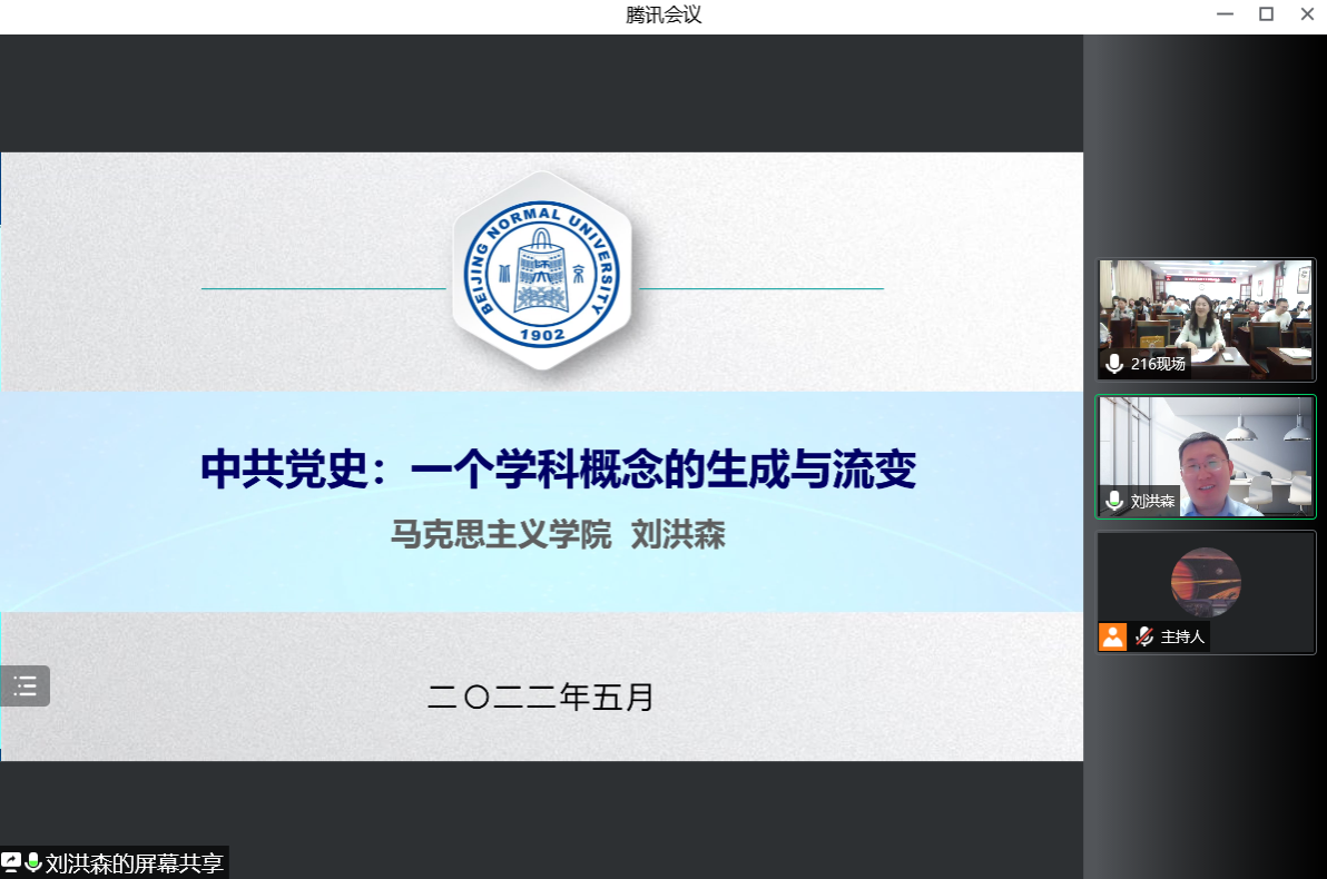 2022年5月23日晚,我院邀请北京师范大学副院长刘洪森副教授,作题为“中共党史:一个学科概念的生成与流变”的学术讲座。此次讲座由我院副院长、党建研究中心执行主任原宗丽教授主持,我院2021级全体硕博研究生在囊萤楼216教室线下听讲。