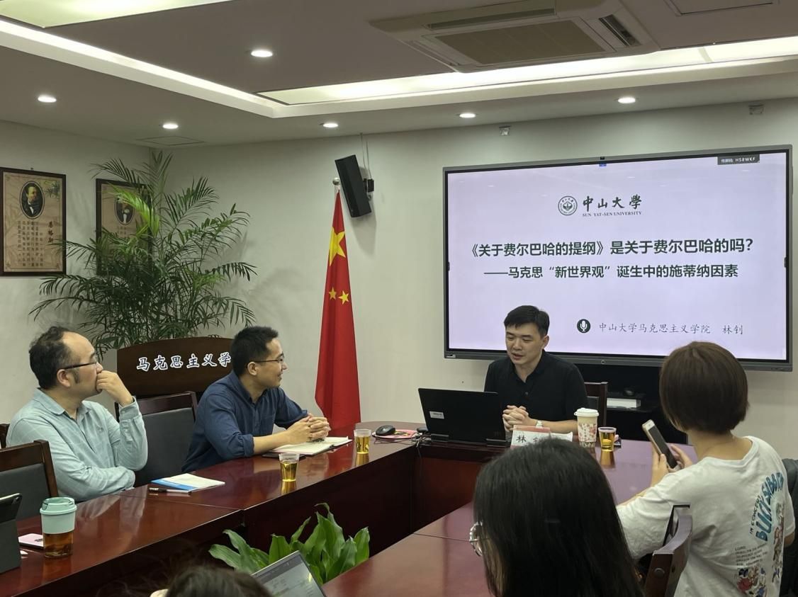 5月26日晚,中山大学马克思主义学院林钊教授应邀作了题为“《关于费尔巴哈的提纲》是关于费尔巴哈的吗——马克思‘新世界观’诞生中的施蒂纳因素”的学术讲座。本次讲座由我院林密教授主持,哲学系唐瑭老师及部分本硕学生和我院部分师生参加了此次讲座。