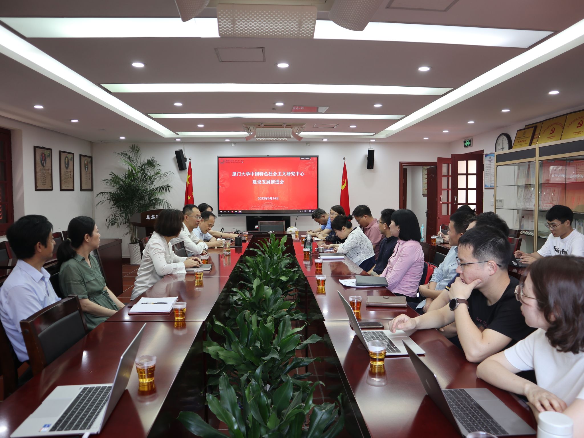 为推进学院科研平台建设发展,完善科研平台管理机制,6月24日上午,中国特色社会主义研究中心(以下简称“中心”)建设发展推进会在囊萤楼302会议室召开。会议总结了中心第二轮建设取得的工作成果,并对中心发展建设面临的难题进行研究讨论。马克思主义学院党委书记石红梅,常务副院长张有奎,党委副书记杨建中,副院长张艳涛,各教研部负责人和教师代表参加了会议。