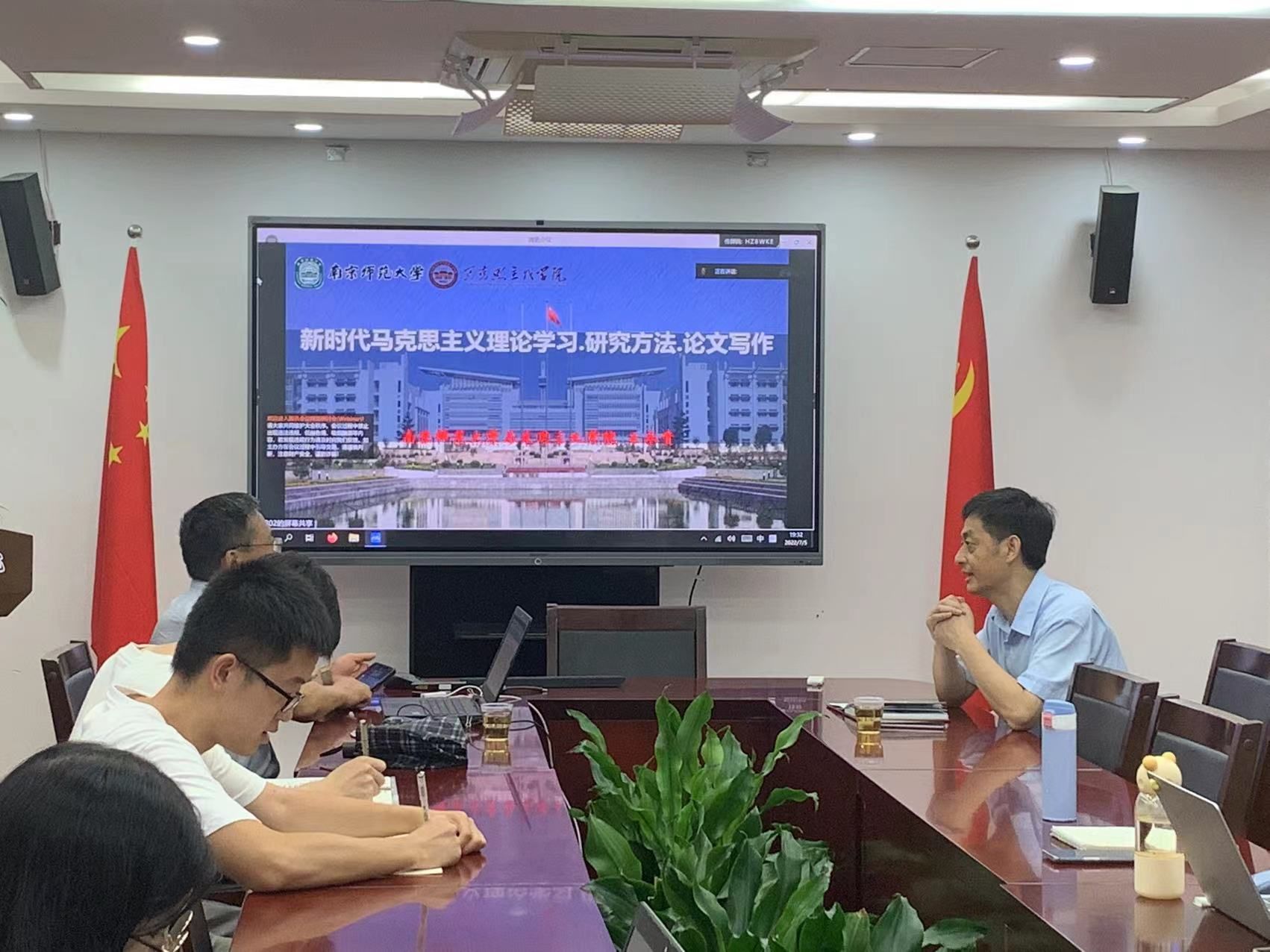 7月5日晚,我院邀请南京师范大学马克思主义学院王永贵教授,作了题为“新时代马克思主义理论学习和研究方法”的学术讲座,本次讲座采用线上线下相结合的方式举行,由我院常务副院长张有奎教授主持,学院部分师生参与活动。