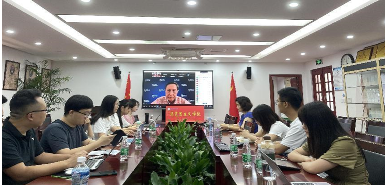 2022年7月18日上午,我院邀请美国特拉华大学中文部创始主任陈建国教授,作了题为“大国博弈下的国际地缘政治及美国社会态势思考”的学术讲座。本次讲座采用线上线下相结合的方式举行,由我院的党委书记石红梅教授主持,学院部分硕博研究生积极参加了此次学习。