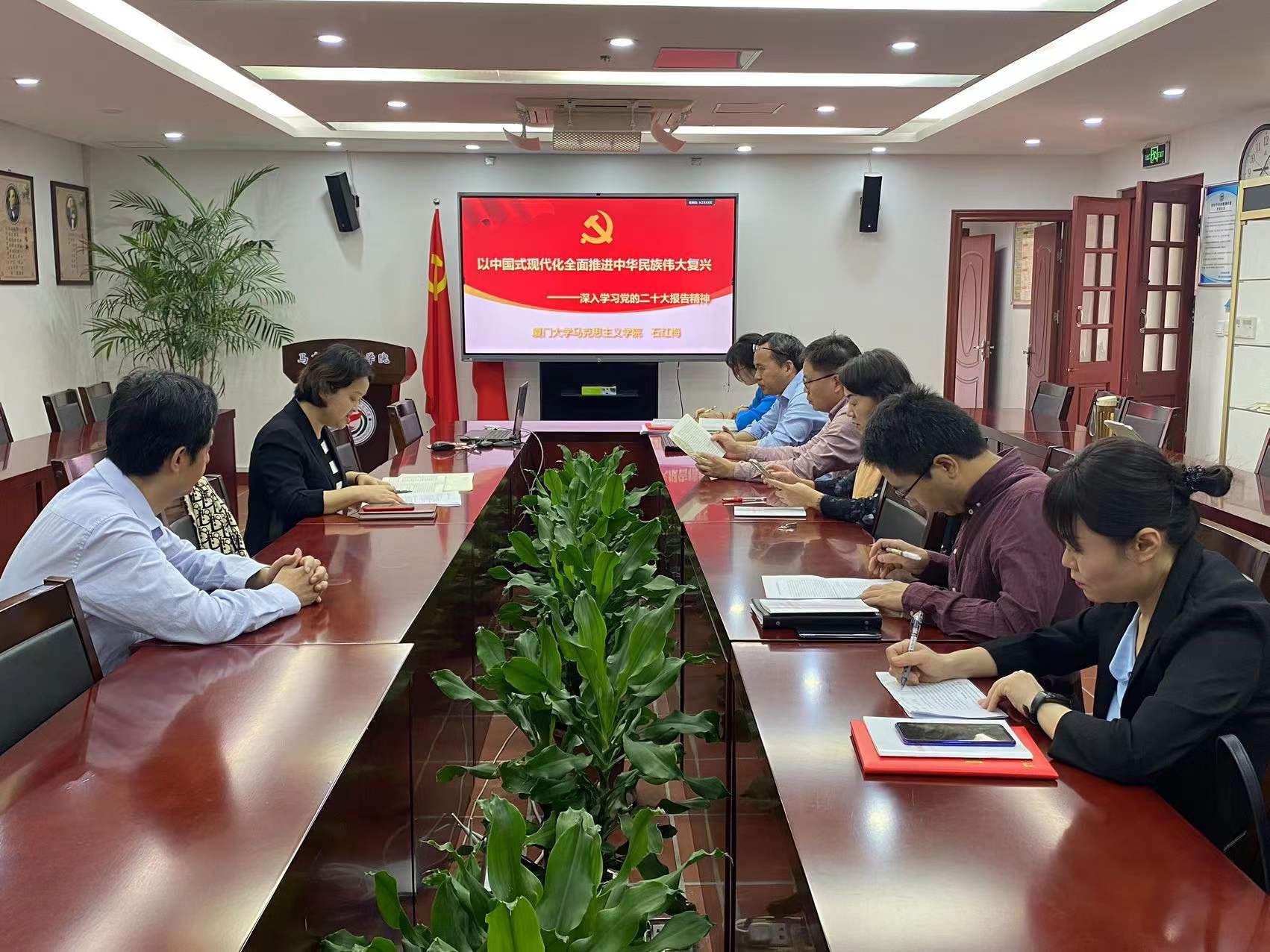 11月2日上午,马克思主义学院理论学习中心组在囊萤楼302会议室召开会议,专题传达教育部直属系统和厦门大学传达学习党的二十大精神相关会议指示。学院党委书记石红梅主持会议。