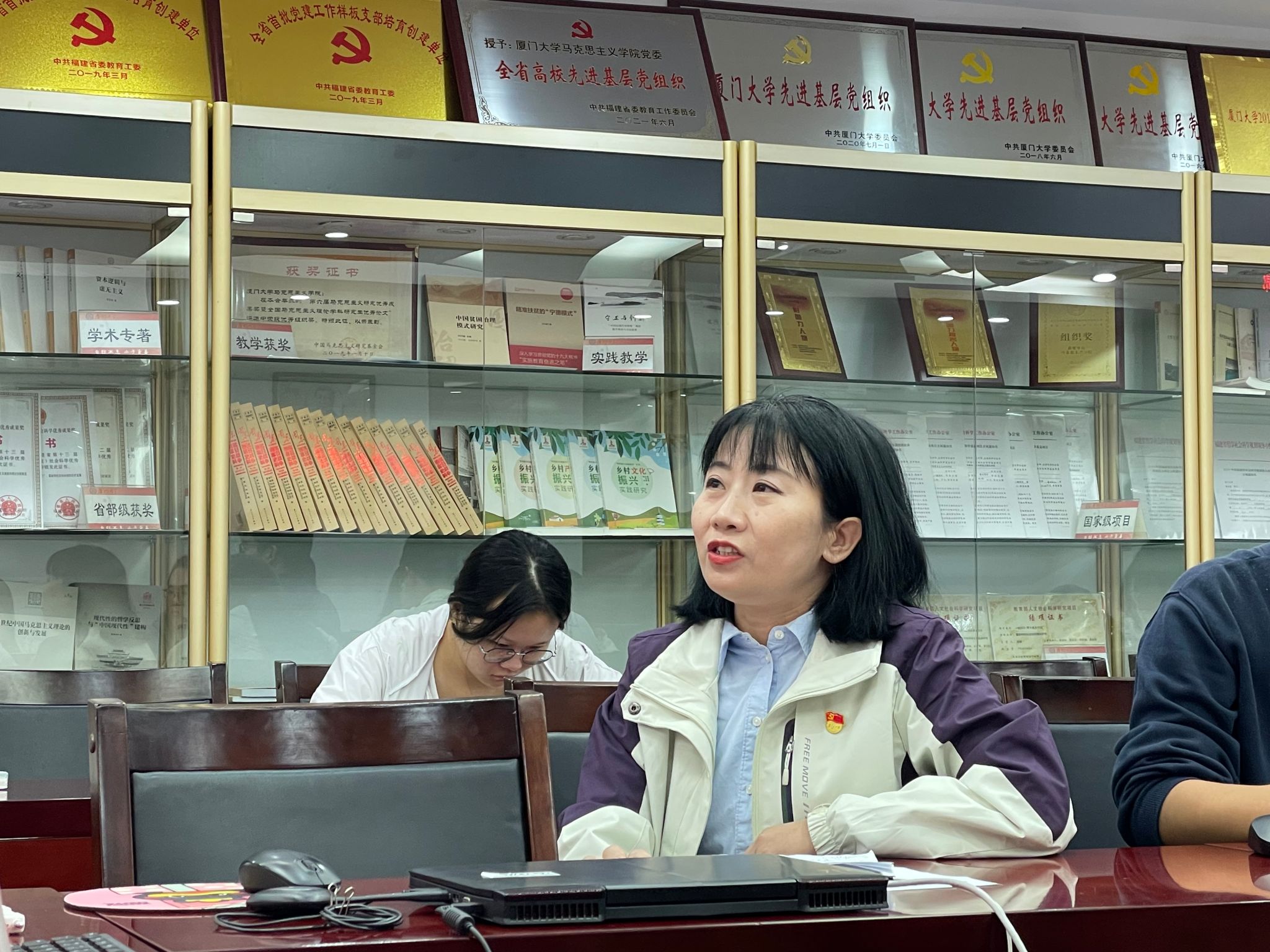 2022年11月7日上午,两个研究生支部的党员、入党积极分子以线上线下相结合的方式共同参加此次跨校联动的主题党日活动。山东大学马克思主义学院党委副书记王海宁、董沐夕副教授,厦门大学马克思主义学院党委副书记杨建中、吴茜副教授等参加本次活动。
