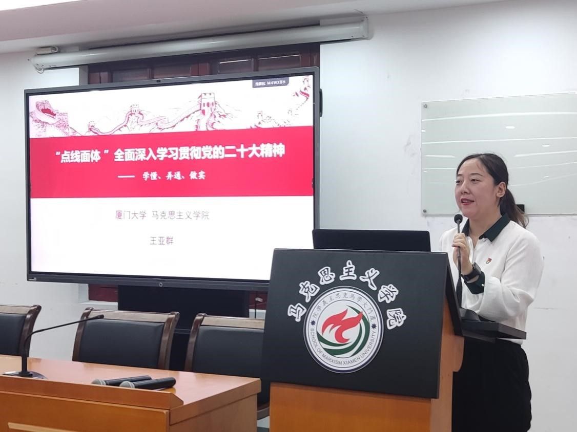 用心钻研,研之有悟。百想齐思,思附践行。通过王亚群老师的深刻解读,在场师生进一步加深了对党的二十大的认识和领悟。在接下来的工作和学习中,马克思主义学院和医学院的师生们将贯彻落实党的二十大精神,把自身专业知识和国家的发展结合起来,把学问做在祖国大地上,与时代同发展,与人民齐奋进,为共同推进中华民族伟大复兴而不懈奋斗!
