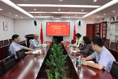 2023年4月21日上午,兰州大学马克思主义学院党委书记黎军、组织员张聪闪到访学院。双方在囊萤楼302会议室开展党建交流座谈会。我院党委书记石红梅、助理教授陈铮、党务秘书江春萍参与此次座谈。