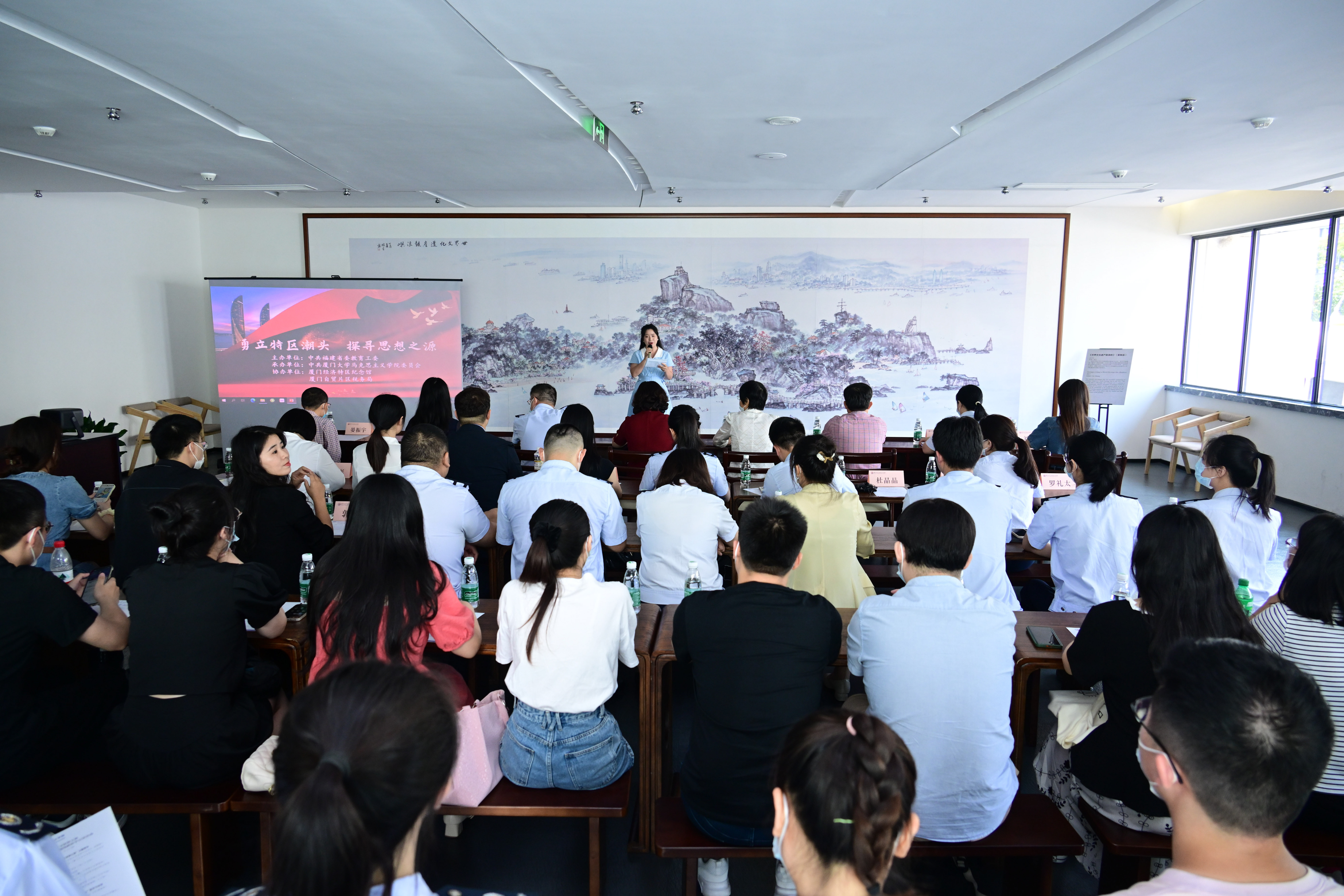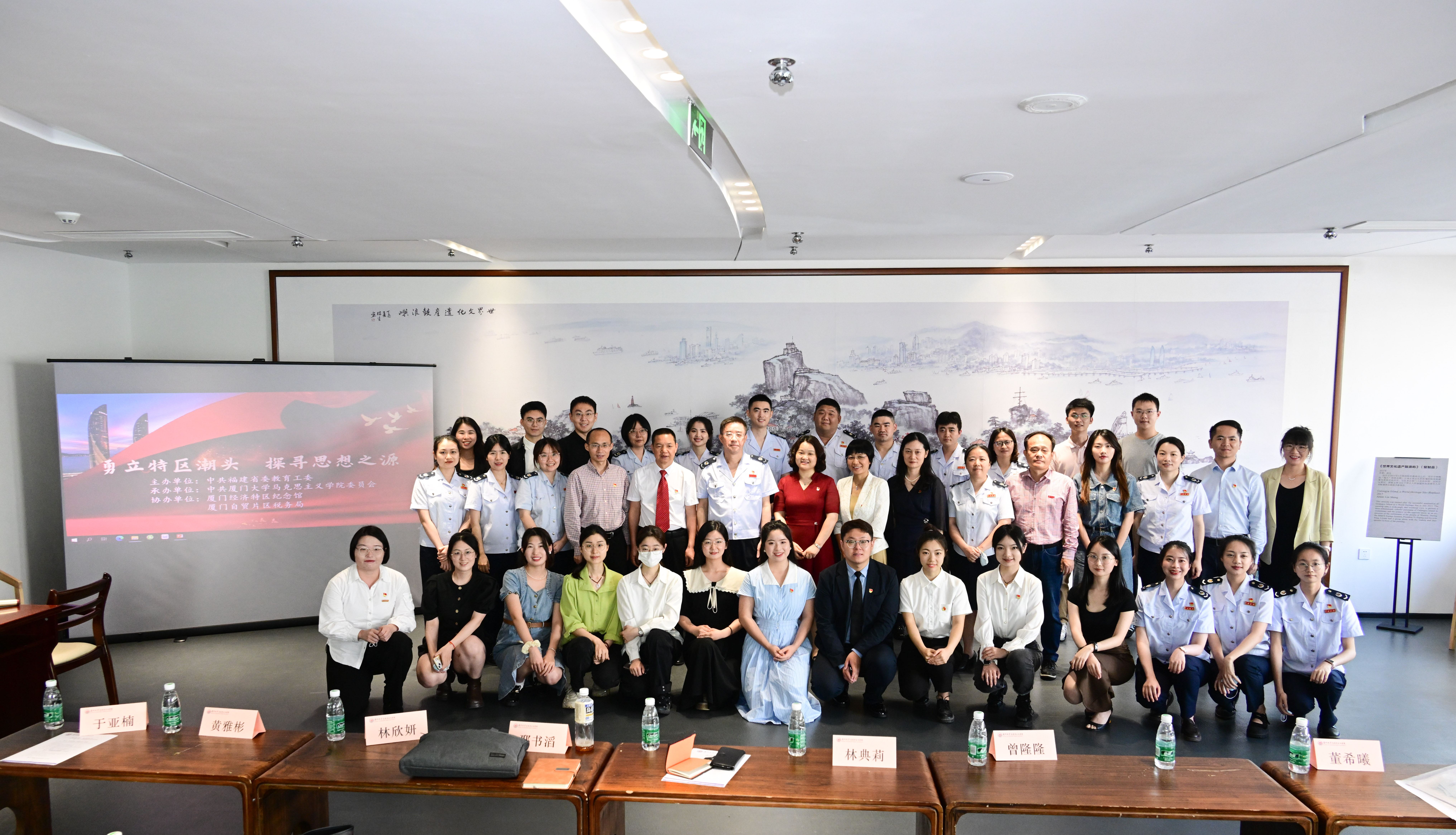 为深入开展学习贯彻习近平新时代中国特色社会主义思想主题教育,推动党的创新理论入脑入心,5月25日下午,福建教育系统新思想青年学生百人宣讲团“思想探源之路”主题线路首场研学宣讲活动,在厦门经济特区纪念馆开讲。本次活动由中共福建省委教育工委主办,中共厦门大学马克思主义学院委员会承办,厦门经济特区纪念馆和厦门自贸片区税务局协办。厦门大学马克思主义学院党委书记石红梅、副书记杨建中,厦门自贸片区税务局党委书记、局长颜宝康,党委委员、总会计师洪晓萍,厦门经济特区纪念馆副馆长徐翠红、赖文燕等出席本次活动。来自福建教育系统新思想青年学生百人宣讲团、福建省习近平新时代中国特色社会主义思想大学生研习社(厦门大学)学生代表和厦门自贸片区税务局青年理论学习小组的代表参加此次活动。