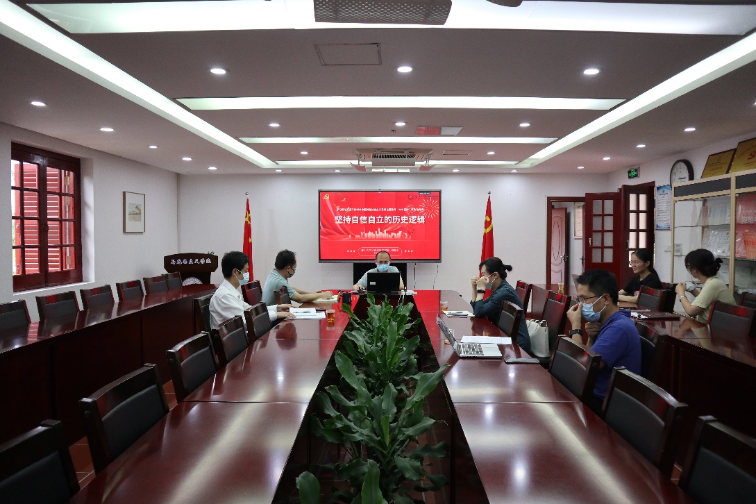 袁华副教授围绕坚持自信自立的理论逻辑展开分享。她指出,历史主体问题是关乎谁来改变历史的根本问题。她从马克思主义理论的传承和发展,深入浅出地剖析“自信自立”的深层意蕴,指出“中国的问题必须从中国基本国情出发,由中国人自己来解答”。从坚持道路上、理论上、制度上和文化上的自信自立四个方面来阐释贯穿于习近平新时代中国特色社会主义思想中坚持走自己的路的坚定信心和决心。她总结到,中国共产党和中国人民将在自己选择的道路上昂首阔步走下去,把中国发展进步的命运牢牢掌握在自己手中。