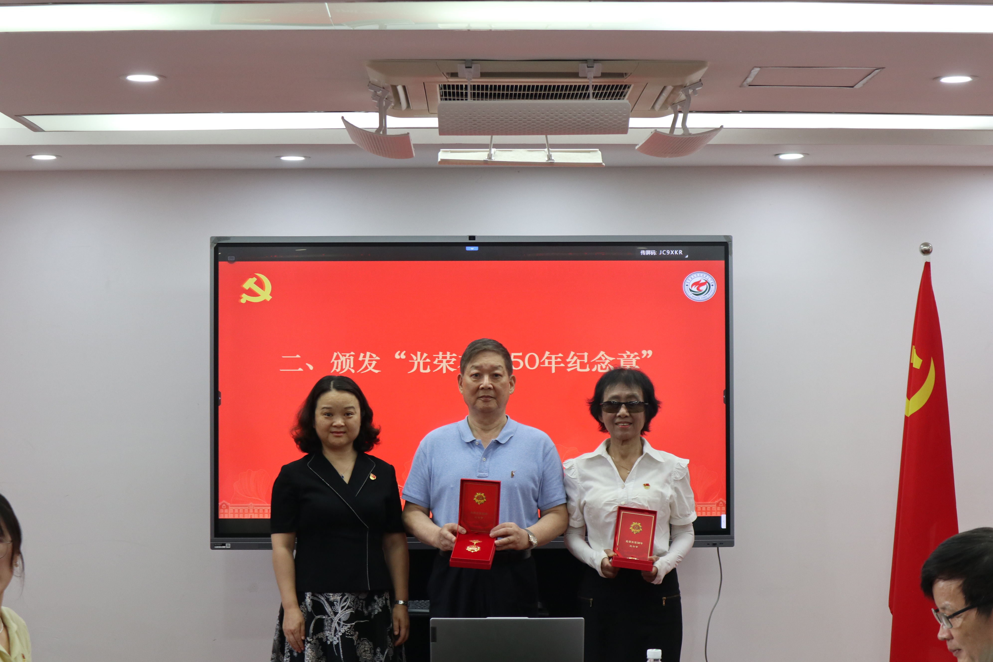 首先,石红梅为吴凌、吴温暖两位老同志颁发“光荣在党50年”纪念章。接着,石红梅宣读《关于表彰2022—2023年优秀共产党员、优秀党务工作者和先进基层党组织的决定》。根据各支部评选推荐、学院党委会议研究,6个先进基层党组织、28名优秀共产党员和12名优秀党务工作者获得表彰。随后,石红梅、何其颖、欧阳佑民、蒋昭阳、苏劲分别为获得表彰的优秀个人和先进基层党组织颁发荣誉证书。
