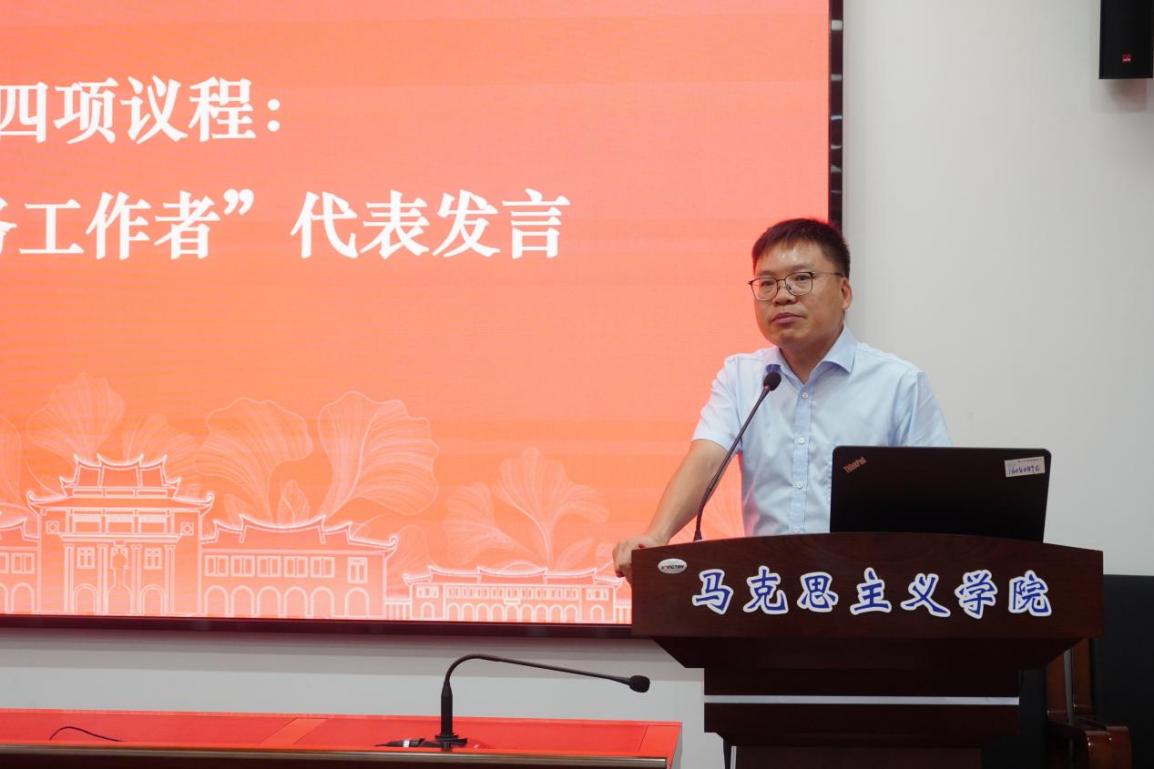 会议特邀校关工委顾问、校党委原副书记陈力文,校基层党建联络员游泽民,马克思主义学院原院长白锡能出席会议。马克思主义学院党委委员、党支部书记、受表彰师生、新党员和入党积极分子代表参加本次会议。会议由学院党委副书记刘晓峰主持。