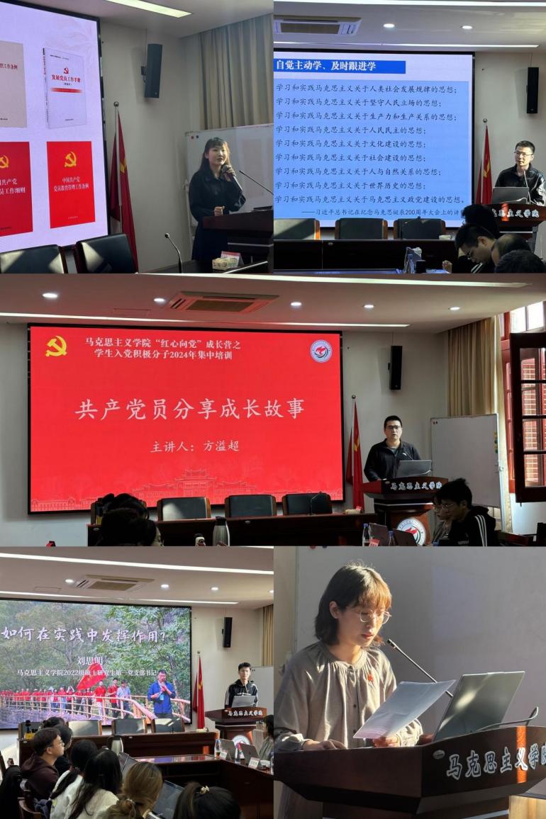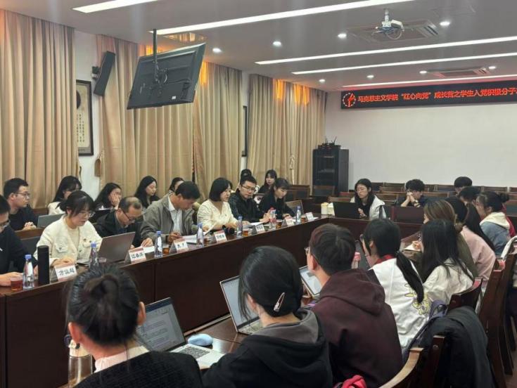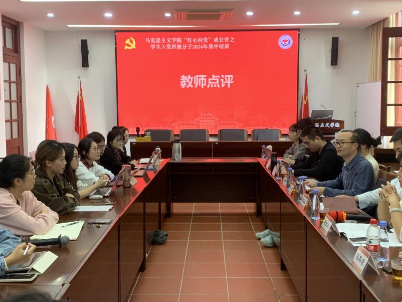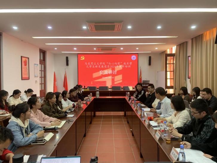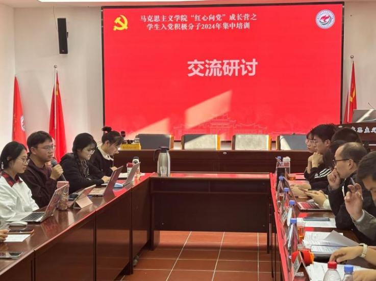 为深入学习贯彻习近平新时代中国特色社会主义思想,贯彻落实党的二十届三中全会精神,进一步提高入党积极分子的思想政治素质,端正入党动机,坚定理想信念,2024年12月11日下午,马克思主义学院党委在囊萤楼216会议室举行“红心向党”成长营之学生入党积极分子2024年集中培训班交流研讨活动。学院党委副书记刘晓峰、2024级硕士研究生班主任史勤、学院党务秘书江春萍以及5位优秀学生党员出席活动,全体入党积极分子参加活动。本次活动由学院团委书记侯佳君主持。