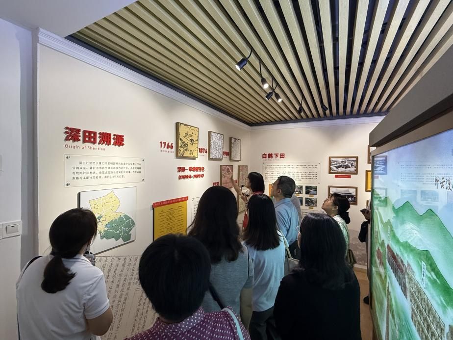 在社区工作人员的热情接待与引导下,师生党员走进深田图强文史馆,丰富的历史资料和具体的治理案例让党员们了解到社区在党建引领下的发展历程、治理模式以及取得的显著成就,感受到习近平同志在实践探索中留下的宝贵思想财富,深刻领悟习近平新时代中国特色社会主义思想在基层的生动实践与强大生命力。