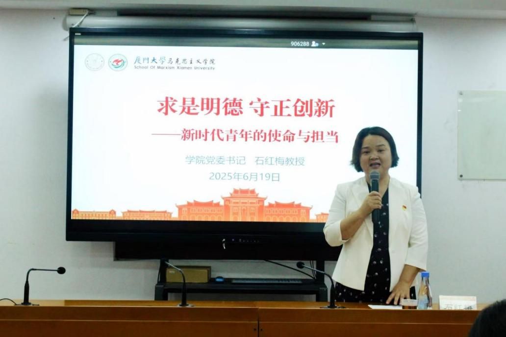 6月19日,学院党委书记石红梅以“求是明德 守正创新——新时代青年的使命与担当”为题,为学院全体毕业生党员讲授专题党课。
