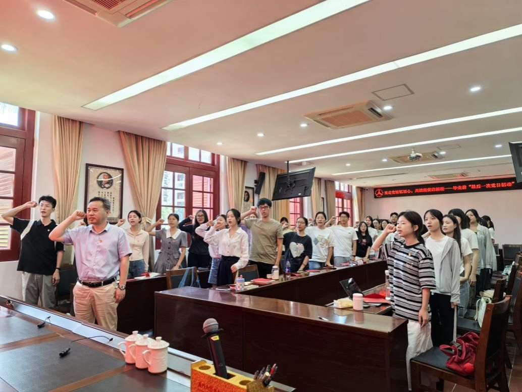 初心如磐,誓言铮铮。毕业班党支部组织开展重温入党誓词、集体过政治生日。全体毕业生党员面向党旗庄严宣誓,在叩问初心、守护初心中坚守使命、担当使命。随后,毕业班党支部为党员们送上政治生日纪念卡。这份特殊的毕业礼物承载着党组织的殷切嘱托。未来,同学们必将铭记誓言、终身坚守、永远奋斗,以更加坚定的信念和饱满的热情投身新征程,展现出厦大马院人的风采。