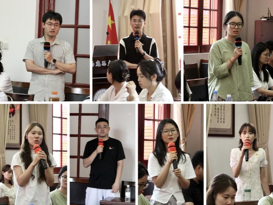 参观结束后,毕业生党员齐聚囊萤楼,围绕“如何在未来岗位上发挥党员先锋模范作用”畅谈初心使命,深情分享在厦大马院的成长感悟。在重点发言环节,吴奕霖、秦佳玉、邓中颖、熊欣、向敏一致表示将坚守岗位,永葆党员本色,努力将所学所获运用到未来的实践中。在自由发言环节,党员们敞开心扉、坦诚交流:既有对学习生涯的回顾,感恩学校培养、师长教导和同窗情谊;也有对未来学习或工作的思考,提出应始终保持奋勇拼搏的动力;更有号召大家不忘初心、牢记使命,向着“成为一名优秀共产党员”目标前进。真诚的分享引发思想共鸣,现场氛围热烈且温馨。
