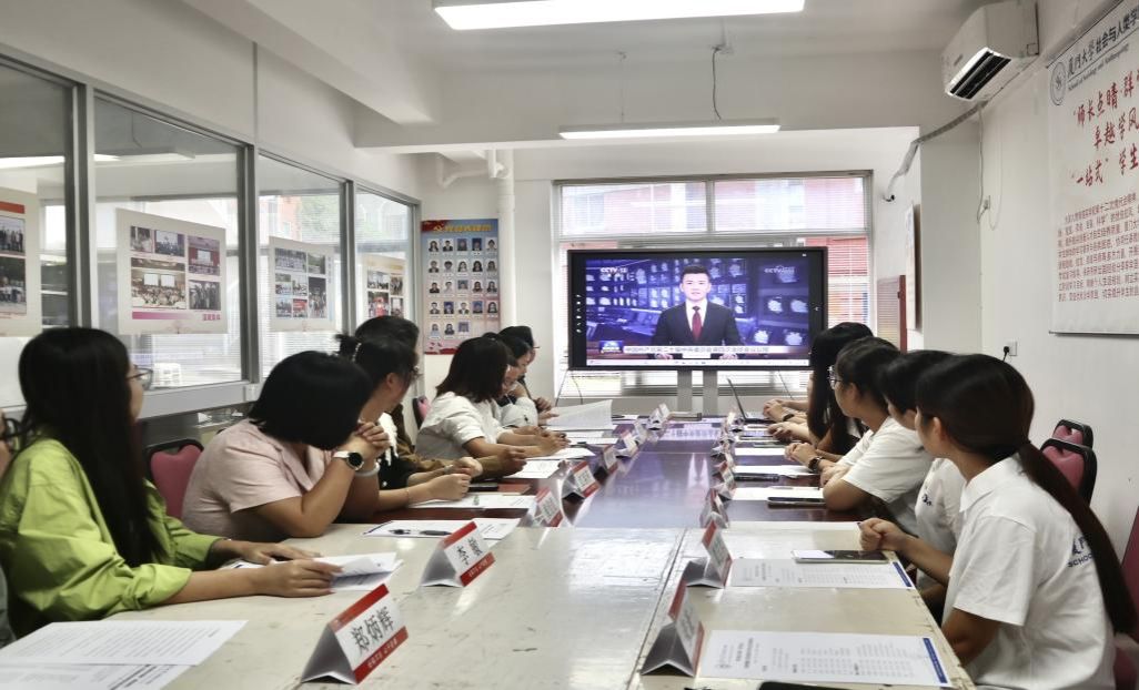 师生共同观看了中国共产党第二十届中央委员会第四次全体会议公报视频。刘晓峰围绕全会重要成果、“十五五”规划发展原则与目标等内容作专题领学。他强调,作为马院学子,要自觉强化理论武装,深刻领会党的方针政策,筑牢信仰之基、补足精神之钙。他结合当前国内外发展形势,深入阐释新质生产力、教育科技人才一体化推进等战略部署的现实意义,引导学生将个人理想融入国家发展伟业。