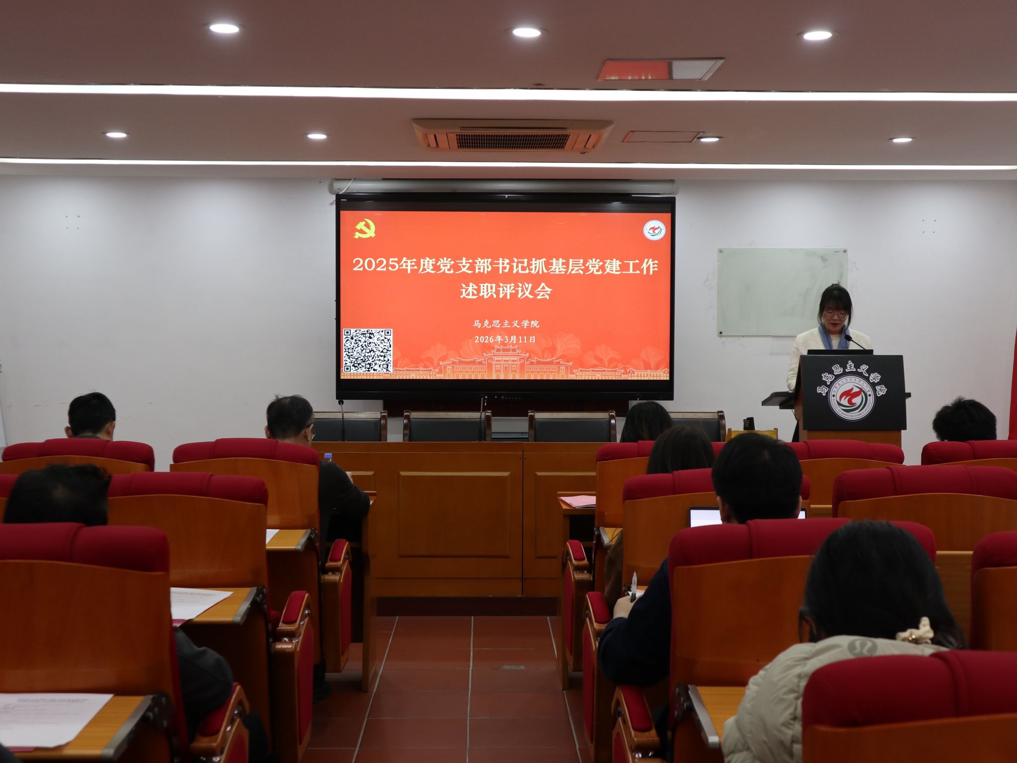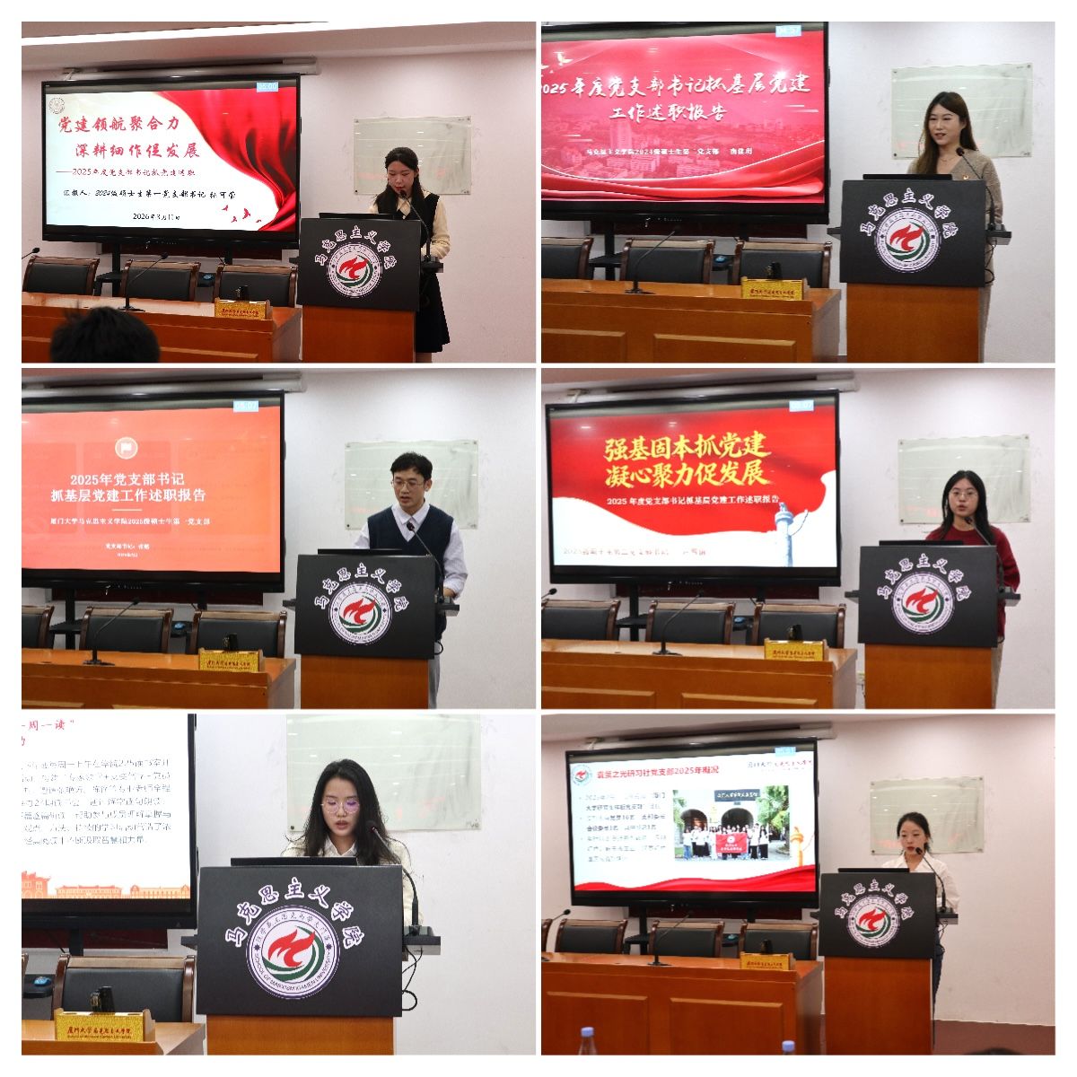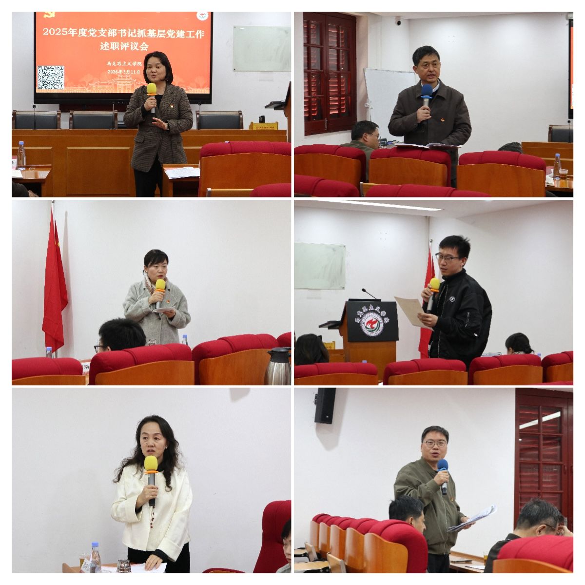 会上,18位师生党支部书记依次进行现场述职。各党支部书记聚焦主责主业,实事求是地总结了2025年度抓基层党建工作的履职情况,在梳理抓党建工作的务实举措、特色亮点的同时,也深刻剖析了存在的问题和原因,并针对工作不足提出下一步改进计划。